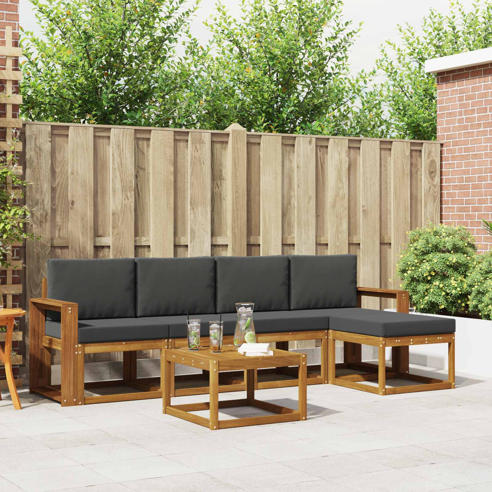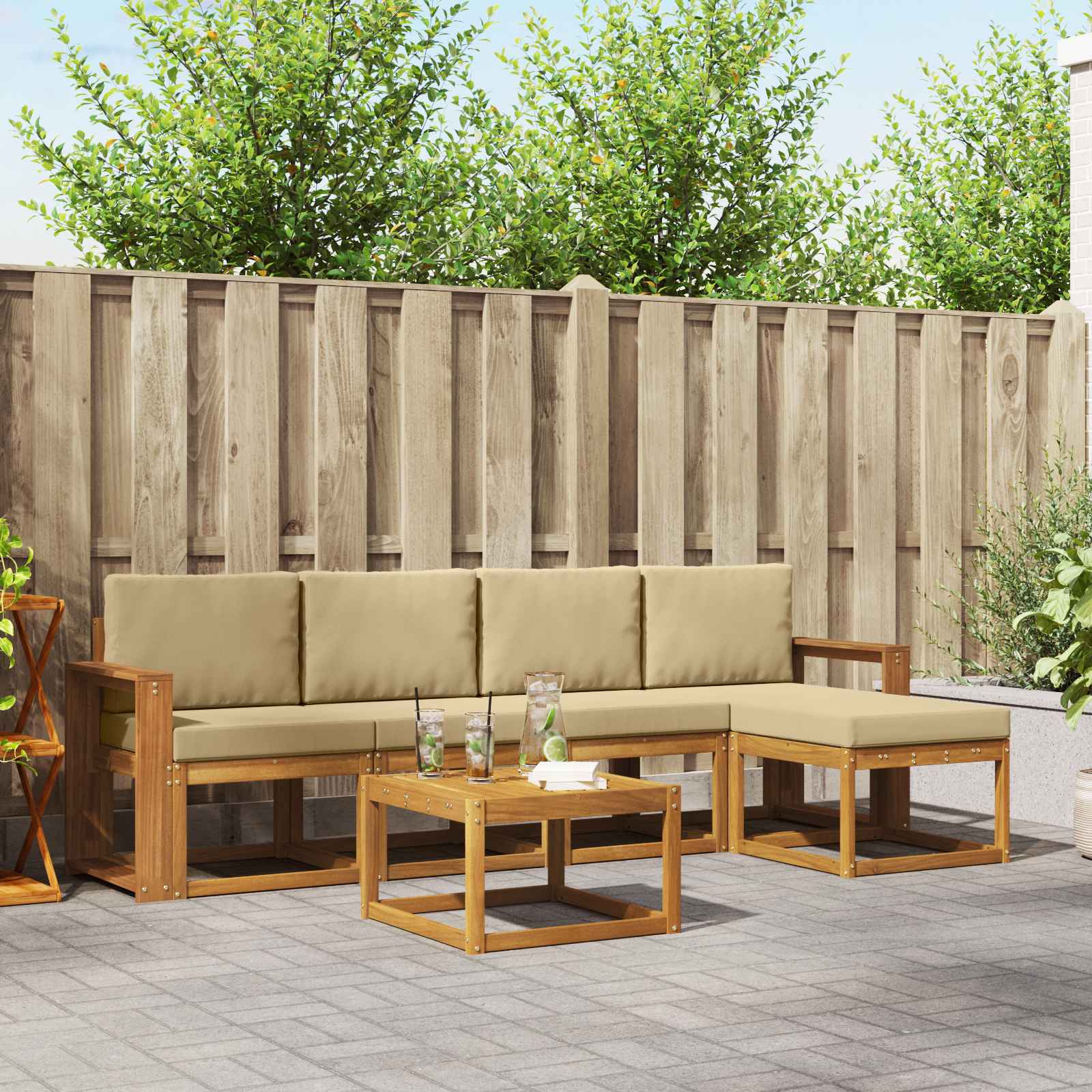 Sada venkovního nábytku spojuje styl a funkčnost, čímž vytváří atraktivní kus pro jakoukoli zahradu nebo terasu. Její moderní design, čisté linie a minimalistické detaily přidávají nádech elegance a podporují pohodlí a společenská setkání venku. Vyrobená z masivního akáciového dřeva, tato sada je odolná a trvanlivá, což z ní dělá ideální volbu pro ty, kdo chtějí jak praktičnost, tak hezký design venkovního nábytku. Odolné masivní akáciové dřevo: Tato venkovní sada je vyrobena z masivního akáciového dřeva, které je známé svojí odolností a výdrží do každého počasí. Pevná konstrukce zajišťuje trvanlivost a stabilitu a teplý přírodní odstín krásně ladí s tvou zahradou nebo terasou. Odolný design: Sada má lakovaný povrch, který poskytuje další ochranu proti slunci, lehkému dešti a počasí. Hladký povrch udržuje vzhled a funkčnost, takže ti nábytek vydrží dlouho ve skvělém stavu. Součásti a design: Každý kus, od opěrek až po zádové opěrky, je navržený pro styl a funkci. Opěrné prvky ti zajistí komfort, zatímco související design vytvoří vizuální harmonii pro různé venkovní akce. Pohodlí a flexibilita: Modulární design ti nabízí flexibilní uspořádání, které se přizpůsobí různým prostoru a potřebám. Ideální na relaxaci, setkání s přáteli nebo klidné čtení, sada se bez problémů přizpůsobí jakémukoli venkovnímu prostředí a maximalizuje pohodlí. Snadná údržba: Chceš-li udržet nábytek v top stavu, stačí ho otřít vlhkým hadříkem a vyhýbat se tvrdým čističům. Pravidelná péče ti pomůže zachovat vzhled a prodlouží životnost výrobku.