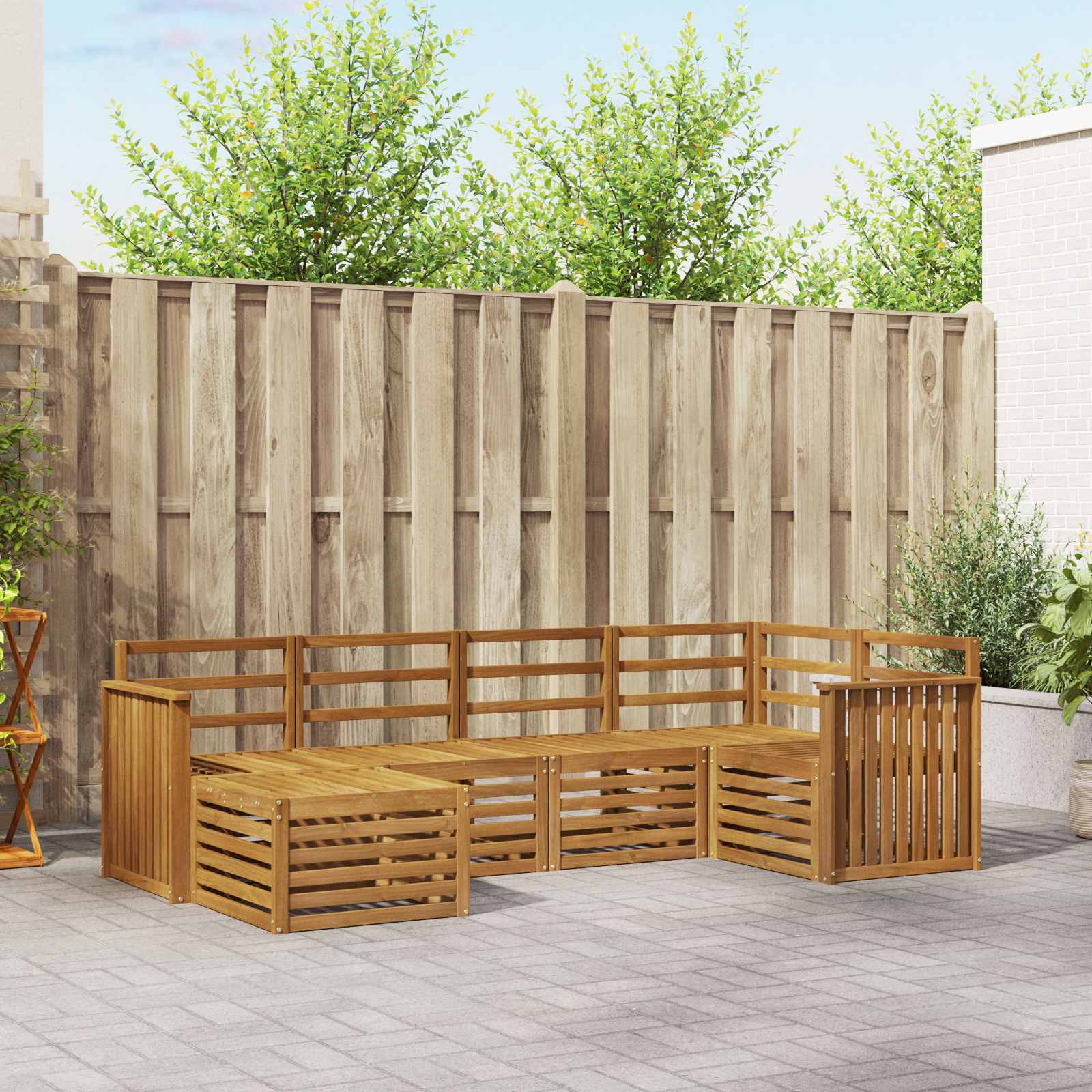 Tato venkovní sedací souprava je fúzí styly a funkcí a je perfektním centrem pro každou zahradu nebo terasu. Moderní design, s čistými liniemi a minimalistickým stylem, přidává eleganci a podporuje odpočinek a společenský život venku. Celá je z masivního akáciového dřeva, takže je fakt odolná a vypadá skvěle, ideální pro ty, co hledají něco praktického a vkusného v zahradním nábytku. Odolné masivní akáciové dřevo: Tato venkovní sedací souprava, vyrobená z masivního akáciového dřeva, je známá svou dlouhou životností a odolností vůči venkovním podmínkám. Pevná konstrukce dodává spolehlivou oporu a stabilitu, zatímco přírodní barva dřeva zvýrazňuje zahradní nebo terasové prostředí. Odolný proti povětrnostním vlivům: Lakovaná úprava sedací soupravy přidává další vrstvu ochrany před sluncem, deštěm a různými povětrnostními podmínkami. Lesklý povrch rozhodně pomáhá udržet nejen vzhled, ale i funkčnost, čímž zajišťuje dlouhou životnost pro vaši zahradu či terasu. Komponenty a design: Každý prvek, od opěrek po opěradla, je navržený jak pro estetiku, tak pro funkci. Opěrky přidávají komfort, zatímco celkový design zajišťuje harmonické uspořádání, které se hodí pro různé venkovní akce. Pohodlí a variabilita: Modulární design dovoluje flexibilní konfigurace pro různé prostory a potřeby. Skvělá pro relaxaci či společenské akce, tato souprava se lehce přizpůsobí jakémukoli venkovnímu prostředí a maximálně zvyšuje pohodlí. Snadná údržba: Pro udržení nábytku v dobrém stavu stačí otřít povrch vlhkým hadříkem a vyhnout se silným čisticím prostředkům. Pravidelnou péčí prodlužujete životnost tohoto nábytku.