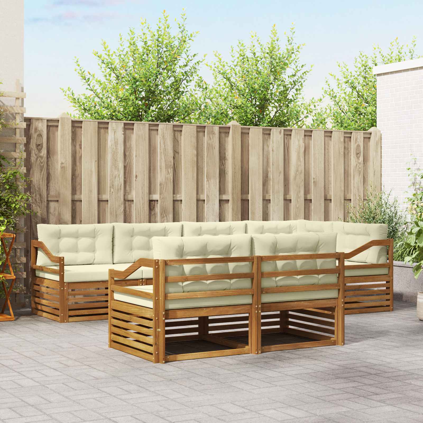 Tahle venkovní nábytková sada kombinuje styl a funkčnost, takže se stává skvělým centrem pozornosti v každé zahradě nebo na terase. Moderní design s čistými liniemi a minimálními detaily dodává eleganci a podporuje venkovní relaxaci a společenské akce. Celá sada je vyrobená z masivního akáciového dřeva, což zajišťuje trvanlivost a trvalý vizuální dojem. Je to perfektní volba pro ty, kdo hledají praktický a sofistikovaný venkovní nábytek. Odolné masivní akáciové dřevo: Tato venkovní nábytková sada je vyrobena z akáciového dřeva, které je známé svojí odolností vůči venkovním podmínkám. Pevná konstrukce poskytuje stabilitu, zatímco teplý přírodní vzhled obohacuje každou zahradu nebo terasu. Odolný design proti povětrnostním vlivům: Tento nábytek má lakovaný povrch, který chrání před sluncem, mírným deštěm a ostatními povětrnostními vlivy. Leštěný povrch pomáhá zachovat jak vzhled, tak i funkčnost, zajišťuje dlouhou výdrž pro tvou zahradu, terasu nebo dvorek. Součásti a design: Každý díl, od opěrek po opěradla, je navržený nejen s ohledem na styl, ale i na funkčnost. Podporující prvky zajišťují větší pohodlí, zatímco celkový design dává výrobku vizuální harmonii, ideální pro různé venkovní příležitosti. Pohodlí a variabilita: Modulární design umožňuje pohodlné uspořádání podle tvých potřeb. Ideální na relaxaci, společenské akce nebo klidné chvíle s knihou, tato sada se snadno přizpůsobí různým venkovním prostředím, maximalizuje komfort a funkčnost. Jednoduchá údržba: Aby se nábytek udržel v dobrém stavu, stačí ho otírat vlhkým hadříkem a vyhnout se drsným čisticím prostředkům. Pravidelná péče pomůže udržovat vzhled a prodlužuje životnost nábytku.