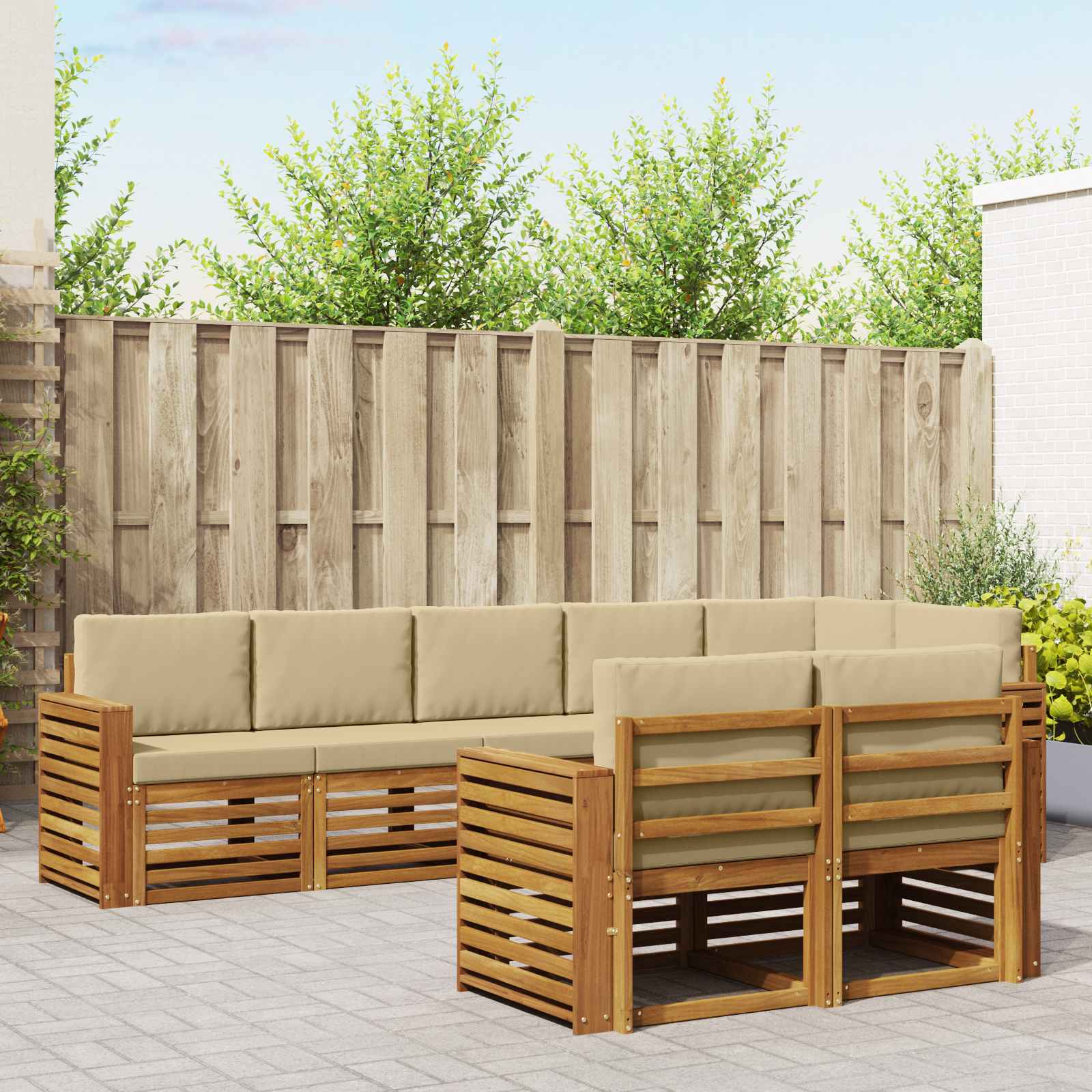Sedací soupravy 8 pcs Přirozená a Béžová Masivní akátové dřevo