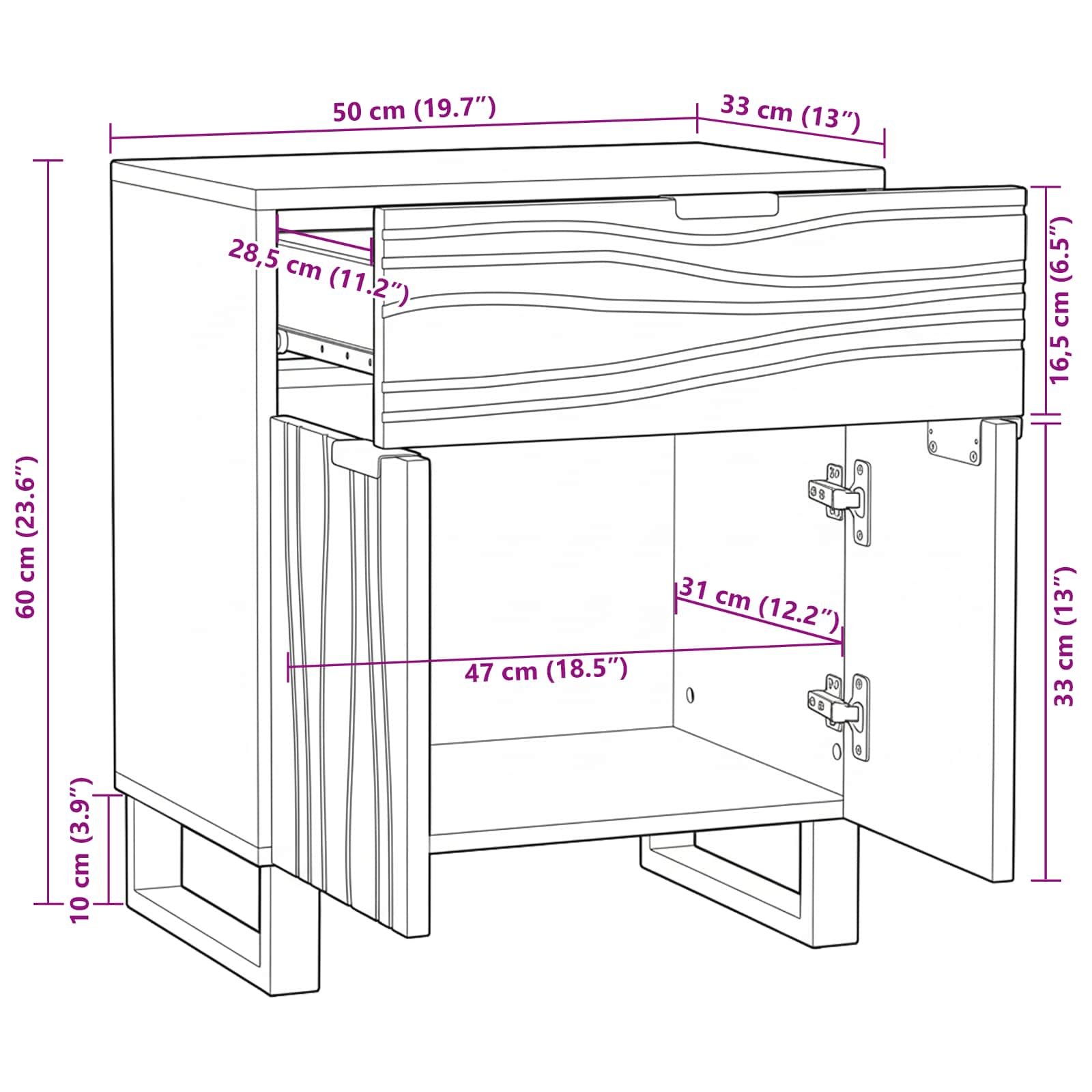 Tenhle elegantní moderní noční stolek kombinuje praktičnost a pěkný design. Je ideální do současných ložnic, dodává atmosféru svými čistými liniemi a minimalistickým stylem. Jeho kompaktní obdélníkový tvar se dobře vejde i do menších prostor a ručně malovaný předek dodává kusu osobitost. Perfektní pro ty, kdo mají rádi jednoduchost a styl, je navržen přesně tak, aby uspokojil každého, kdo chce do svého bytu vnést moderní dotek. Materiály: Vyrobený z masivního magnovníkového dřeva, tenhle noční stolek je super odolný a zvládne každodenní používání. Mosazné detaily dodávají styl a šmrnc, zatímco sekundární kompozitní dřevo přispívá k lehkosti. Tyhle materiály zaručují, že zůstane klíčovým kouskem v ložnici na dlouhou dobu. Součásti: Obohacený o mosazné knoflíky, noční stolek má pohodlný přístup k prostornému interiéru. Tyhle knoflíky se krásně drží a každé otevření je radost. Dveře se otevírají hladce, díky pevnému mosaznému základu, který zaručuje stabilitu a elegantní vzhled. Funkce / Užití / Design: S praktickým designem, tenhle stolek má matný povrch, který vyzařuje moderní styl a minimalizuje odlesky. Sofistikované mosazné úchytky dodávají umělecký nádech, spojují funkci s estetikou, zatímco dostatek úložného prostoru zajišťuje pořádek v ložnici. Doporučené použití: Navržený tak, aby seděl vedle postele, tenhle stolek je ideální na noční lampy, budíky nebo cennosti. Jeho nenápadný, ale módní vzhled ho činí vhodným do jakéhokoli moderního nebo přechodového interiéru. Údržba: Údržba je jednoduchá, stačí pravidelně utírat suchým hadříkem, aby zůstal v top stavu. Časté čištění pomáhá udržet jeho povrch bez poskvrny, takže stále vypadá skvěle a doplňuje okolí bez námahy.
