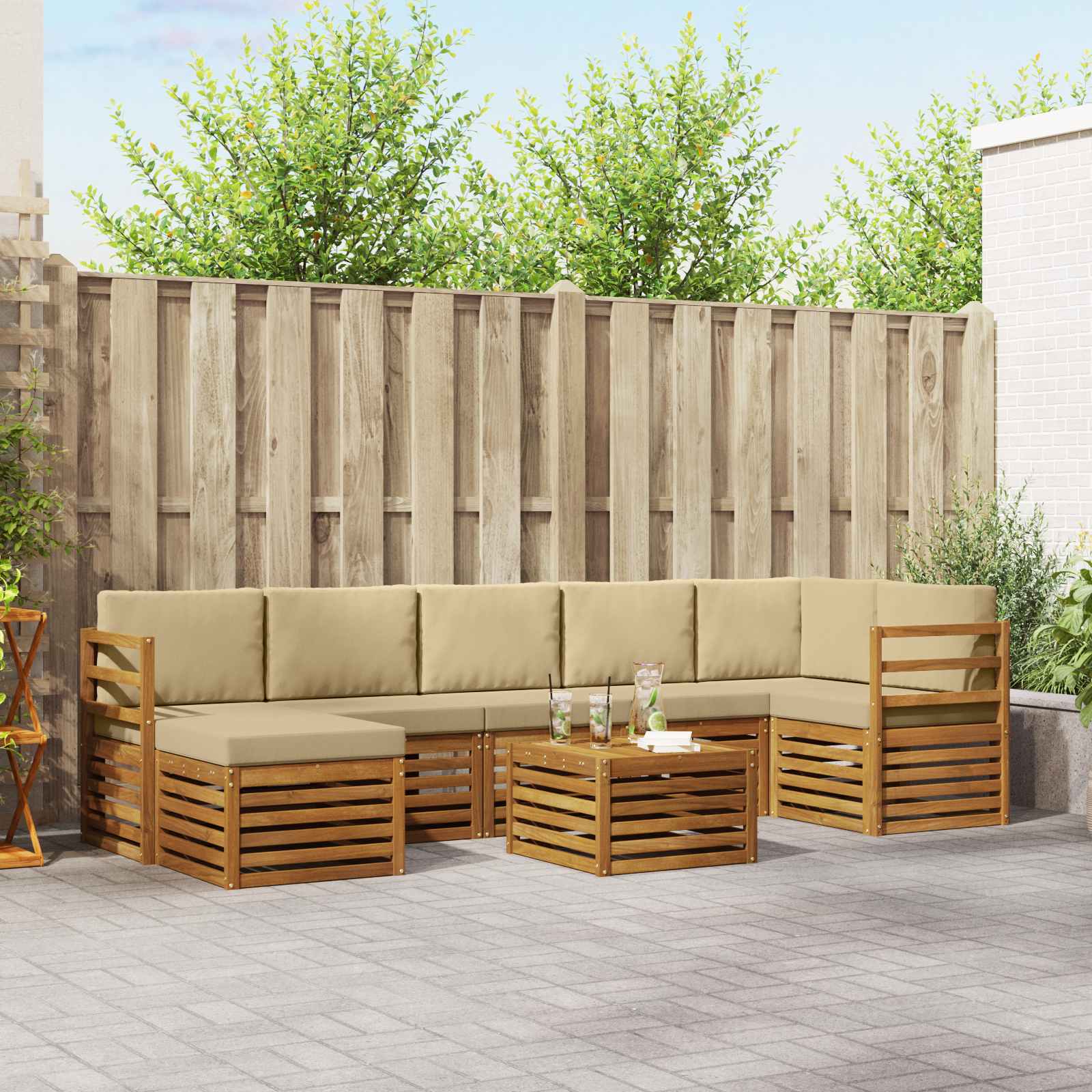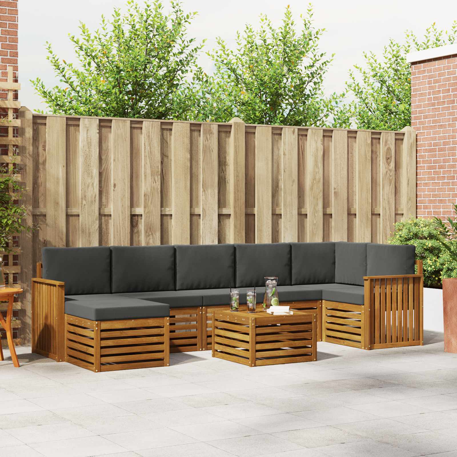 Tato zahradní souprava skvěle spojuje styl a funkčnost, vytváří úžasný středobod pro každou zahradu nebo terasu. Moderní design s čistými liniemi a minimálním zdobením dodává eleganci a podporuje tak venkovní odpočinek a společenské akce. Vyrobena z masivního akáciového dřeva, zajišťuje trvanlivost a dlouhotrvající vzhled, což ji činí ideální pro ty, kdo hledají praktičnost a slušný design venkovního nábytku. Odolné masivní akáciové dřevo: Tento venkovní nábytek je vyroben z masivního akáciového dřeva, které je známé svou pevností a odolností vůči venkovním podmínkám. Pevná konstrukce zaručuje stabilitu a dlouhou životnost, zatímco příjemná přírodní barva obohacuje jakoukoli zahradu či terasu. Odolný vůči povětrnostním vlivům: Tento venkovní nábytek má účinný lakovaný povrch, který chrání před sluncem, mírným deštěm a jinými podmínkami. Leštěný povrch pomáhá udržovat vzhled i funkčnost, takže je ideální pro vaši zahradu, terasu nebo dvorek. Komponenty a konstrukce: Každý kus, od opěrek po područky, je navržen pro styl i funkci. Patřičná podpora zajišťuje pohodlí, zatímco celkový design skvěle vypadá v každé venkovní situaci. Pohodlí a variabilita: Modulární design vám umožňuje flexibilní nastavení, vyhovující různým potřebám a prostorům. Ideální pro odpočinek, společenské akce nebo tichá čtení, tato souprava se přizpůsobí jakémukoliv venkovnímu prostředí a maximálně zvyšuje pohodlí a funkčnost. Snadná údržba: Udržování nábytku je jednoduché, stačí povrch otřít vlhkým hadříkem a vyhnout se hrubým čističům. Pravidelná údržba pomůže zachovat vzhled a prodloužit životnost nábytku.