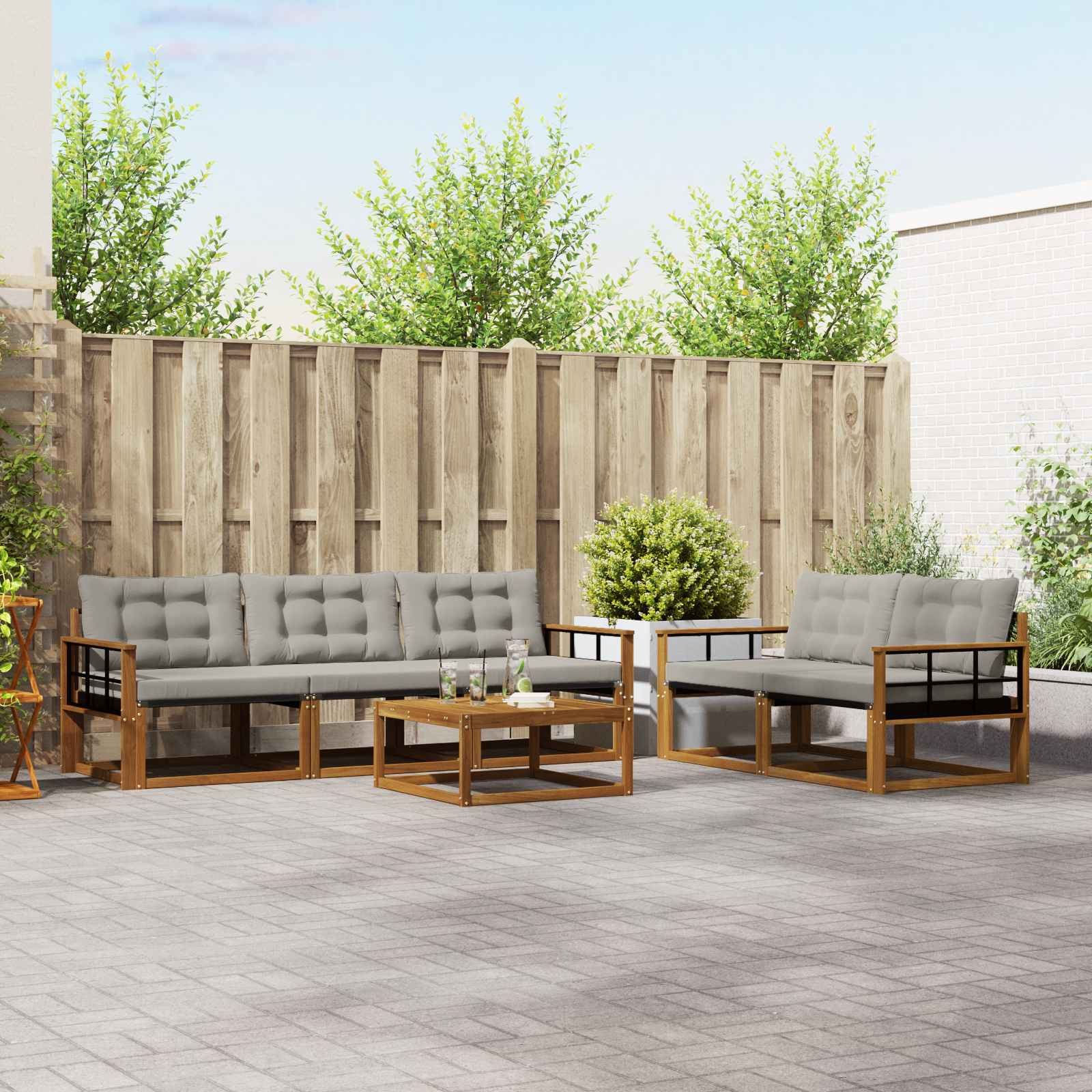 Tato venkovní nábytková sada kombinuje styl a funkčnost a vytváří úžasný centrální bod pro vaši zahradu či terasu. Její moderní design s čistými liniemi a minimálním zdobením dodává eleganci a podporuje relaxaci venku nebo společenská setkání. Vyrobená z masivního akáciového dřeva, tato sada garantuje dlouhou životnost a trvalou vizuální přitažlivost, což ji činí ideálním výběrem pro každého, kdo hledá praktický a stylový nábytek ven. Odolné masivní akáciové dřevo: Tato venkovní nábytková sada je vyrobena z masivního akáciového dřeva, které vyniká odolností vůči venkovním podmínkám. Pevná konstrukce zajišťuje stabilitu a dlouhou životnost, zatímco teplé přírodní tóny krásně doplní každý zahradní nebo terasový prostor. Povětrnostně odolný design: Lakovaný povrch této sady dodává extra ochranu vůči slunci, mírnému dešti a dalším povětrnostním vlivům. Lesklý povrch pomáhá udržet vzhled a funkčnost, čímž zaručuje dlouhou trvanlivost vaší zahrady, terasy nebo dvorku. Komponenty a design: Každý prvek, od opěrek po opěradla, je navržený pro styl i funkčnost. Podpůrné prvky dodávají pohodlí, zatímco celkový design zajišťuje hezký vizuální dojem, vhodný pro různé venkovní příležitosti. Pohodlí a všestrannost: Modulární design vám umožní snadno změnit uspořádání podle prostorových potřeb. Je ideální pro relaxaci, setkání s přáteli nebo klidné chvíle s knížkou, tato sada se snadno přizpůsobí jakémukoli venkovnímu prostředí a zabezpečuje pohodlí a užitečnost. Snadná údržba: Abyste si nábytek udrželi v pěkném stavu, stačí povrch utřít vlhkým hadříkem a vyhnout se silným čisticím prostředkům. Pravidelná údržba pomáhá zachovat jeho vzhled a prodlužuje životnost.