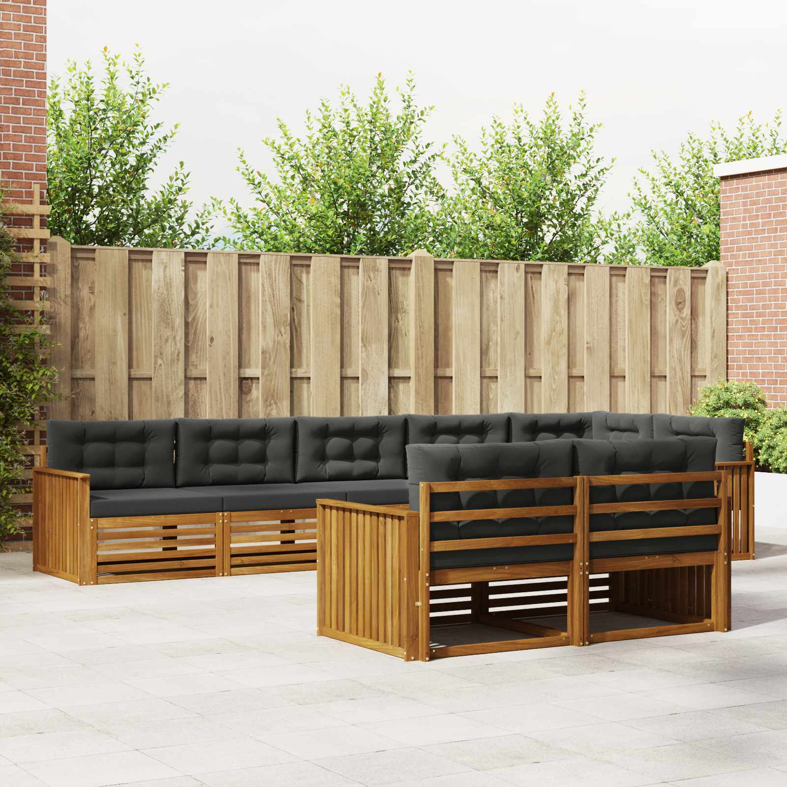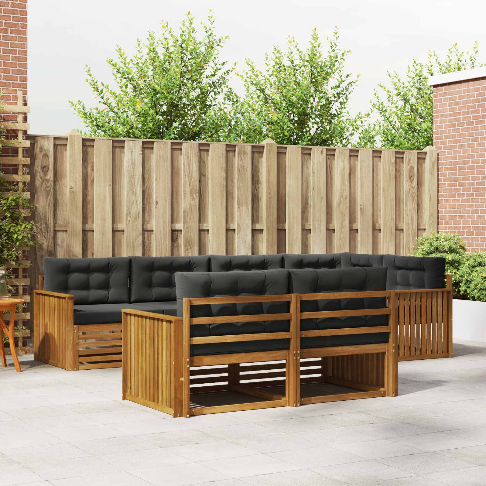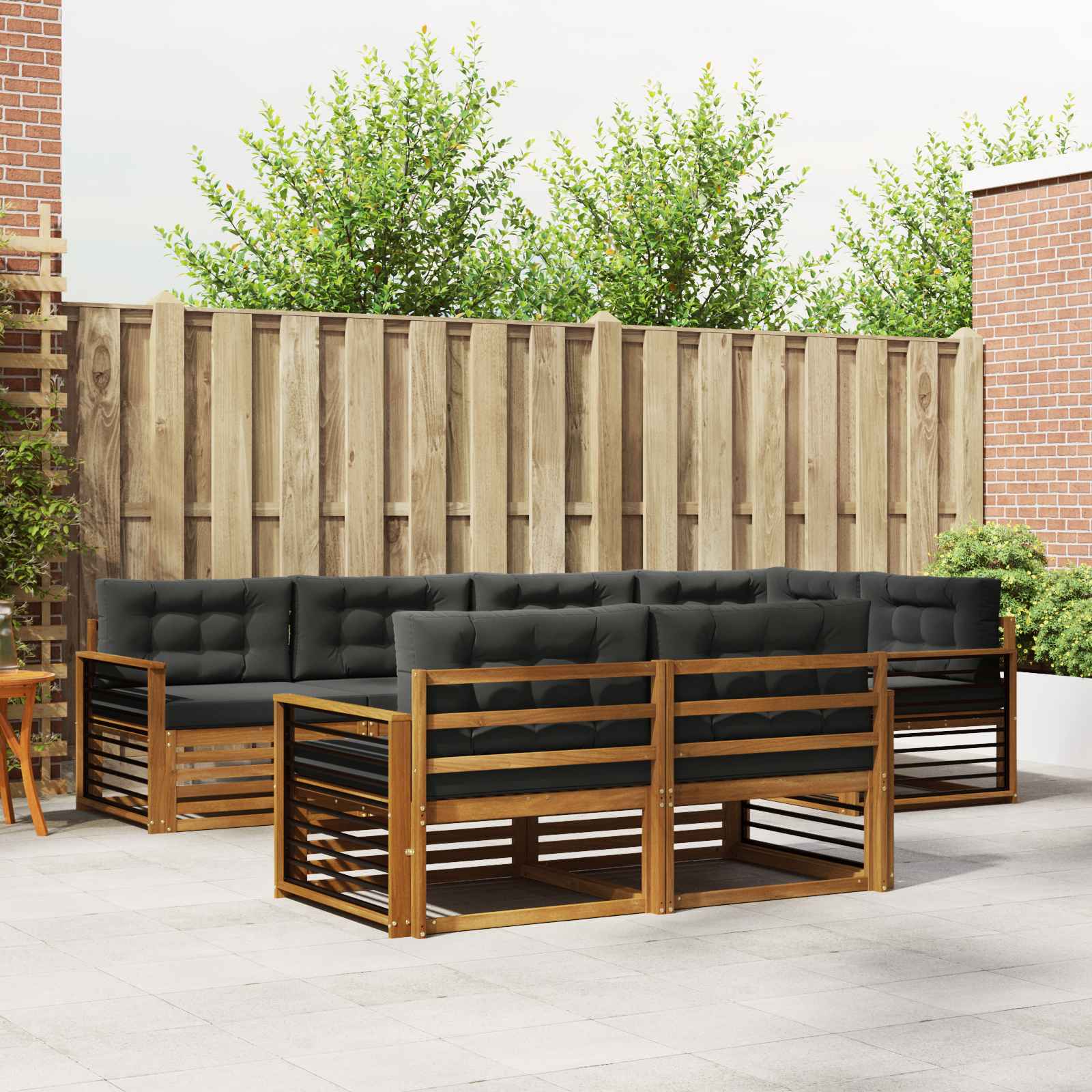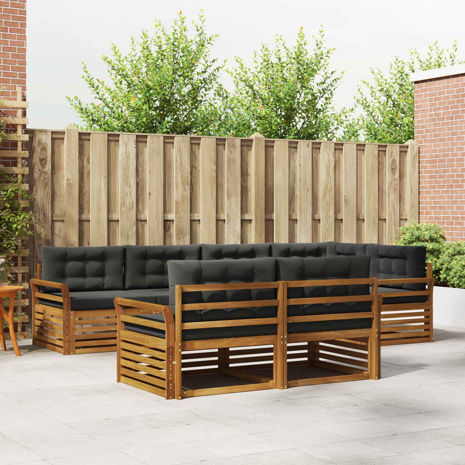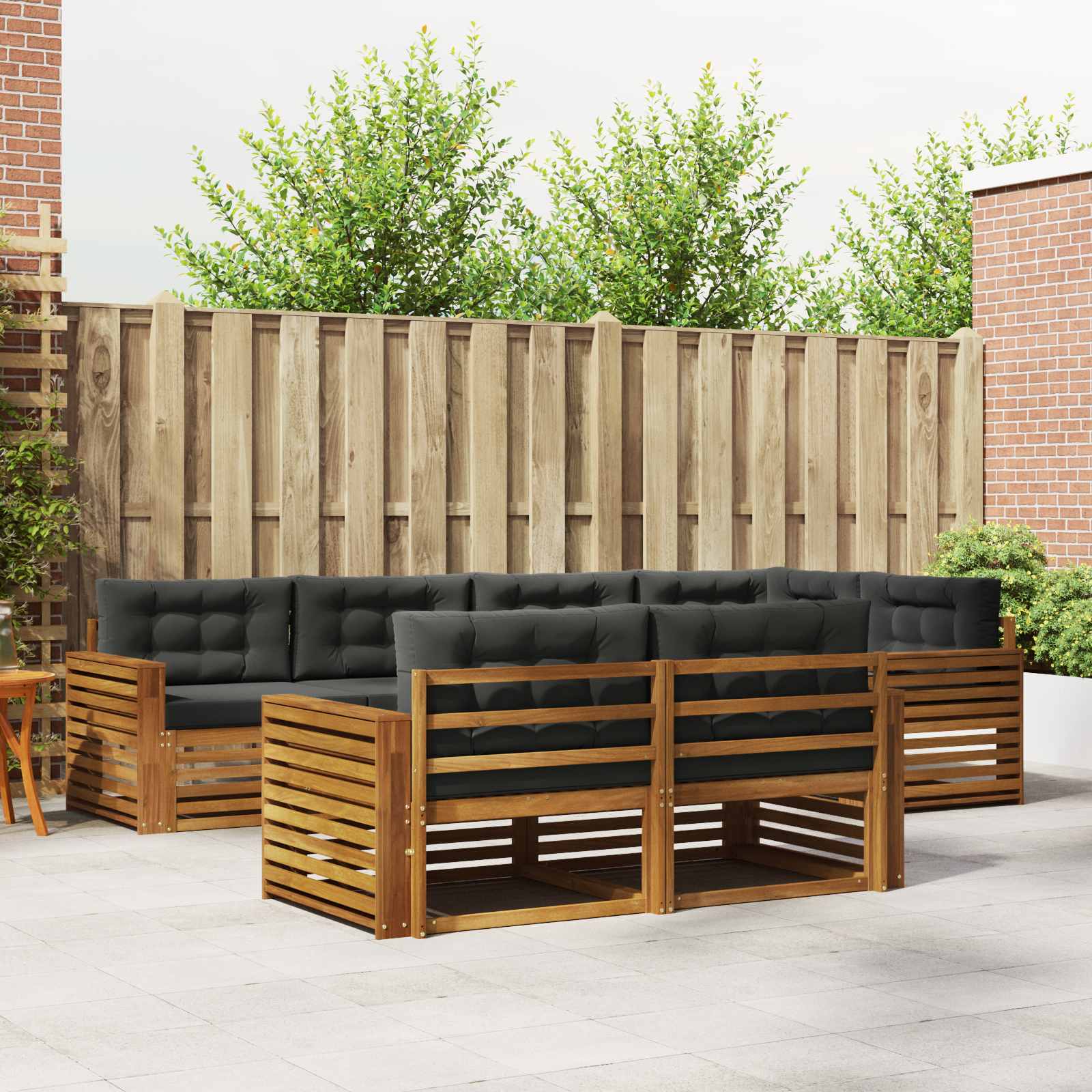 Tato venkovní pohovková sada spojuje moderní eleganci a funkčnost, takže se hodí do každé zahrady nebo na terasu. Její design je minimalistický, přičemž masivní akáciové dřevo dává krásnou barvu. Skvělá na venkovní odpočinek, udržuje trvanlivost a flexibilitu, což znamená, že si ji můžete uspořádat podle našich potřeb – relaxovat, bavit se nebo si popovídat. Každý kus zlepší atmosféru vaší zahrady a vytvoří příjemné prostředí pro setkání nebo klidné chvíle o samotě. Masivní materiály: Tato pohovková sada je z masivního akáciového dřeva, což ji dělá stabilní a odolnou pro venkovní použití. Krásná textura a teplé hnědé odstíny dodávají přírodní vzhled a skvěle ladí s okolím. Akácie vydrží i povětrnostní podmínky a dlouho si udrží hezký vzhled. Funkce a design: Pohovku můžete přeskupit podle svých potřeb. Lamelové opěradlo zajišťuje pohodlí a dobré větrání, což je skvělé v teplých dnech. Ergonomické područky doplní relaxaci a zvyšují pohodlí, když venku sedíte delší dobu. Víceúčelové komponenty: Pevná lamelová konstrukce utáhne časté sezení a shromáždění. Teplé hnědé područky a opěradla dodávají styl a komfort. Je navržena pro venkovní použití a skvěle se hodí na slunečné zahrady a živé terasy. Moderní adaptabilita: S čistým minimalistickým vzhledem tahle pohovková sada vyzařuje moderní styl s důrazem na čisté linie. Perfektní do současných venkovních prostorů, jde ruku v ruce s funkčními a stylovými potřebami a vytváří uvolněnou atmosféru pro sdílení s přáteli nebo relaxaci o samotě. Snadná údržba: Pro udržení skvělého vzhledu jednoduše utřete hadříkem, což zajišťuje rychlou údržbu. Nízké nároky na údržbu udržují pohovkovou sadu svěží, i když máte hodně hostů nebo se mění roční období.