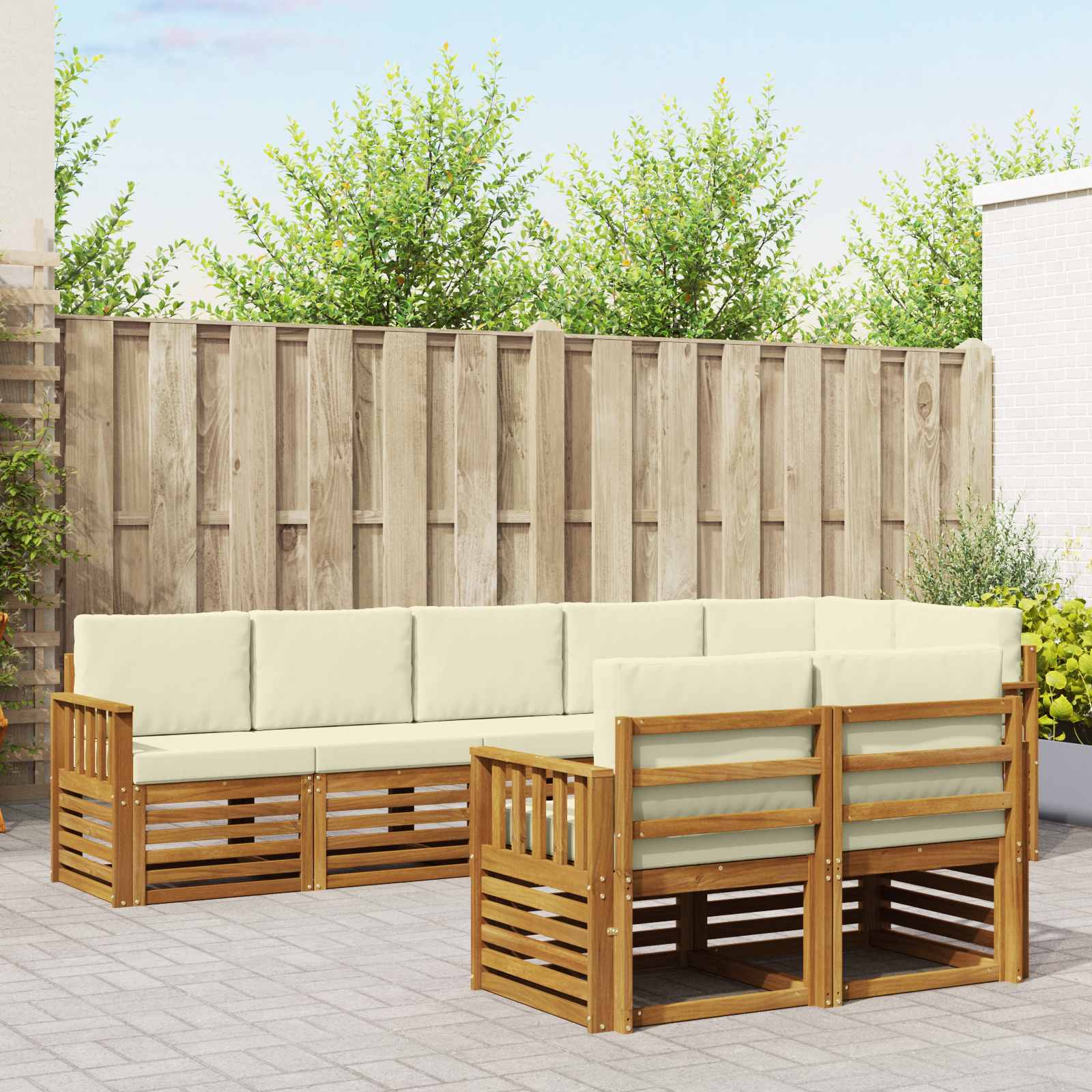 Sedací soupravy 8 pcs Přirozená a Krémová Masivní akátové dřevo