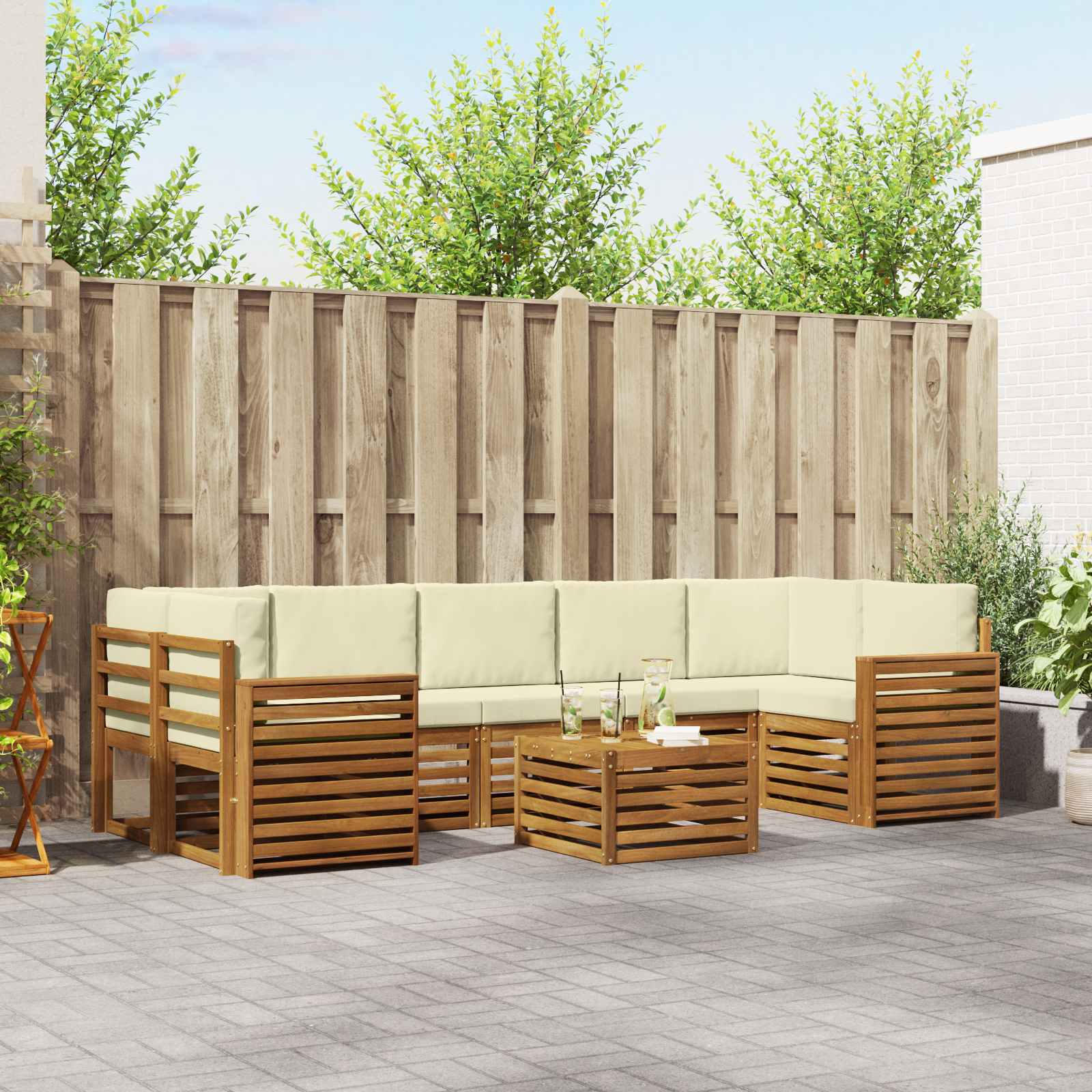 Sedací soupravy 8 pcs Přirozená a Krémová Masivní akátové dřevo