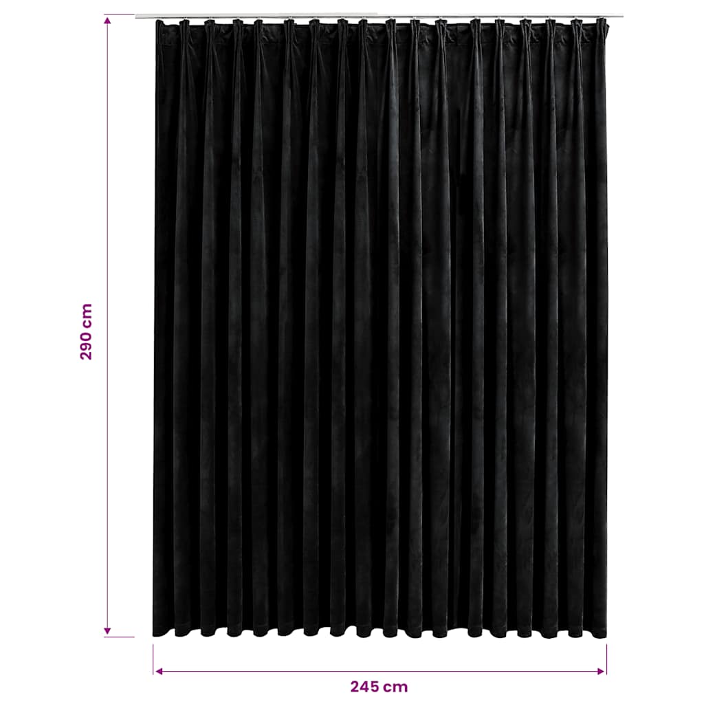 Zatemňovací závěs s háčky sametový černý 290 x 245 cm
