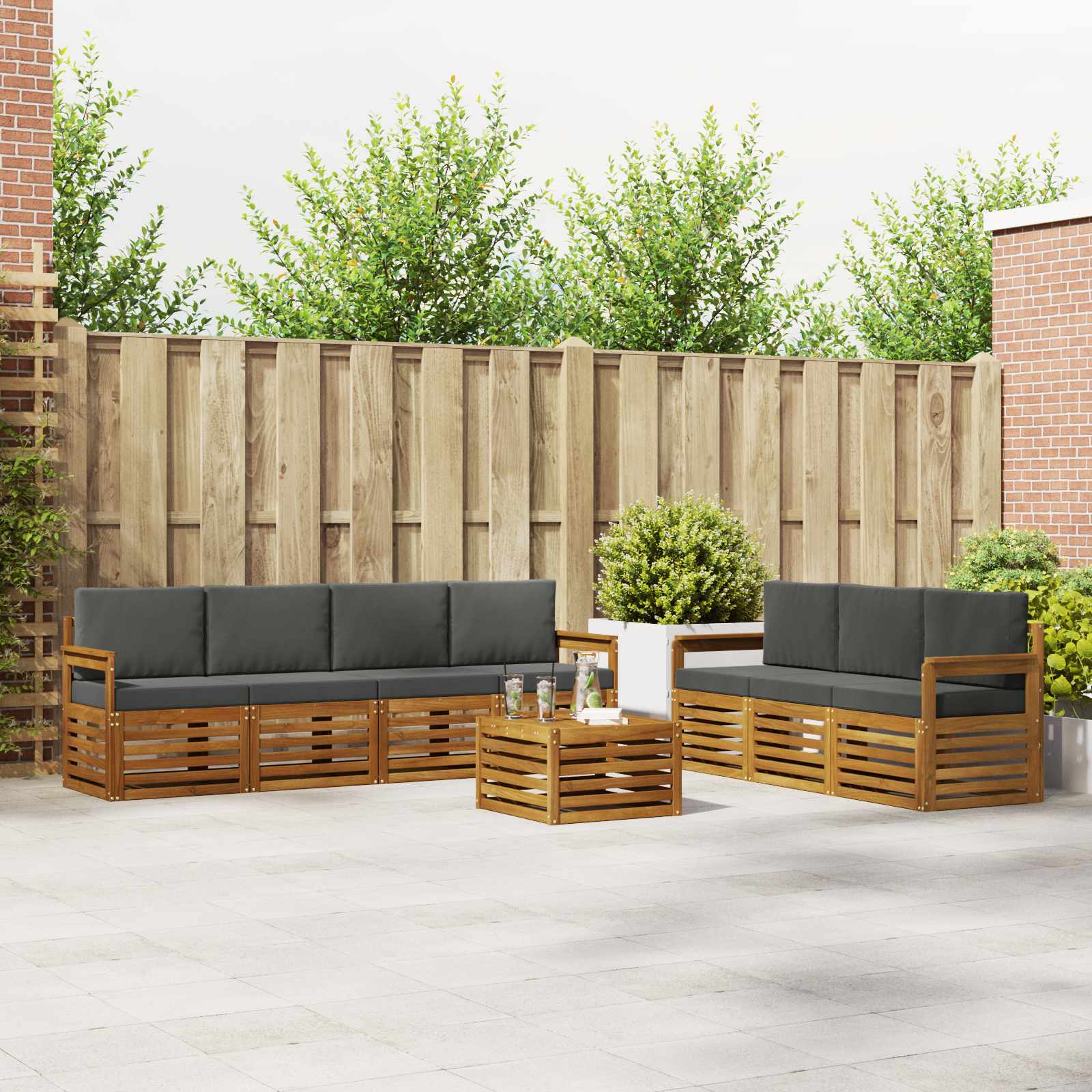 Tato venkovní gaučová souprava spojuje moderní styl s nadčasovou funkčností. Je ideální pro ty, co mají rádi jednoduchost a šarm. S elegantními liniemi a minimalistickým designem se stane středobodem vašeho venkovního prostoru. Je skvělá pro relaxaci v zahradě, na terase nebo u bazénu. Lamelové opěradlo a rám nabízejí pohodlné sezení, které je super pro setkání s přáteli nebo chvíle o samotě. Umožňuje vám přetvořit jakýkoli prostor na osobní útulí, kde se elegantně spojuje příroda s pohodlím. Materiál z masivní akácie: Tato venkovní sofa souprava je vyrobena z kvalitního akáciového dřeva, známého svou odolností vůči počasí. Přírodní variace barvy a vzoru dodávají každému kusu jedinečný šarm. Díky tomu vydrží krásná i v drsných podmínkách. Modulární konfigurace: Každá část gauče se dá přehazovat podle vašeho vkusu. Díky této flexibilitě si můžete upravit uspořádání podle potřeby, ať už pořádáte večírek, nebo chcete mít útulný koutek pro čtení. Umožňuje vám vymyslet origami pro různé příležitosti. Odolnost vůči počasí: Navrženo s lamelovým designem, tohle sofa vydrží měnící se počasí. Je ideální do zahrady, na terasu nebo k bazénu a odolává vyblednutí a opotřebení od slunce, větru i deště. Pohodlné opěradlo: Opěradla jsou navržena tak, aby nabídla ergonomickou oporu. Poskytují skvělé pohodlí, takže můžete relaxovat, ať už máte volný den na sluníčku, nebo pořádáte venkovní dýchánek. Péče a údržba: Pro co nejlepší vzhled se doporučuje používat kryt, když gauč není v provozu, a pravidelně otírat vlhkým hadříkem, aby se zbavil prachu a nečistot. Tyhle jednoduché údržbové tipy zajistí, aby vám gauč sloužil ještě dlouho.