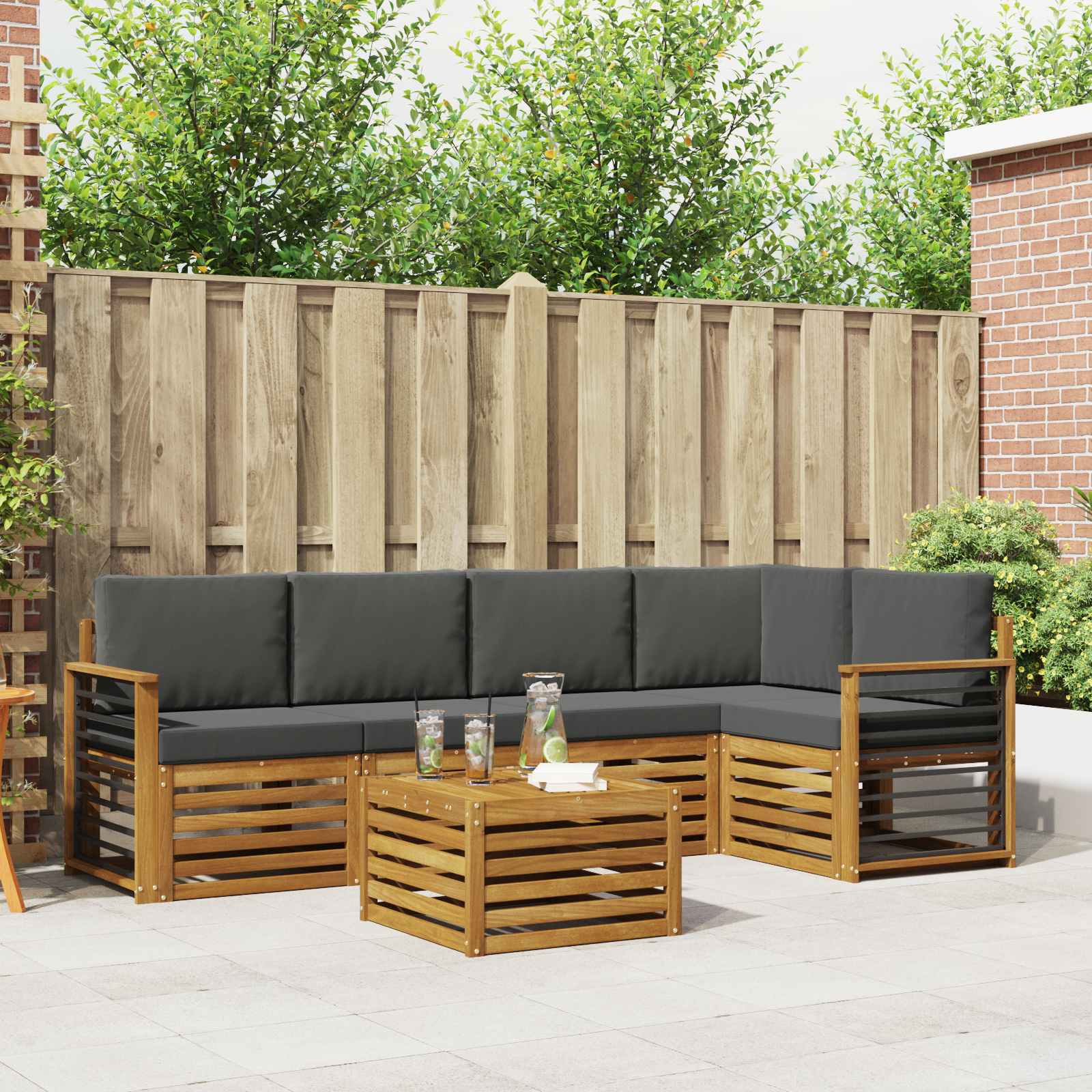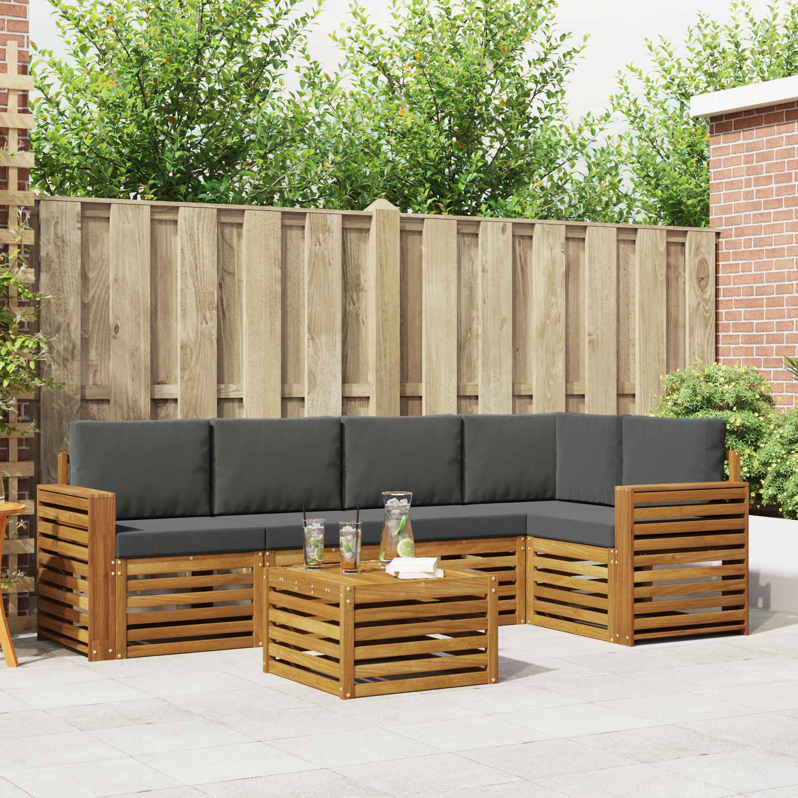 Souprava zahradního nábytku spojuje styl s funkčností a stává se tak úžasným středobodem pro každou zahradu či terasu. Její moderní design s čistými liniemi a přehlednými detaily dodává eleganci a podporuje venkovní odpočinek a setkání s rodinou a přáteli. Vyrobená z masivního akáciového dřeva, je to ideální volba pro ty, kteří hledají jak praktičnost, tak i styl. Odolné masivní akáciové dřevo: Vyrobené z masivního akáciového dřeva, toto venkovní nábytkové setkání je velmi trvanlivé a odolné vůči počasí. Robustní konstrukce zajišťuje stabilitu a atraktivní přírodní odstín se hodí do každé zahrady. Design odolný vůči povětrnostním vlivům: Povrch je ošetřen, aby vás chránil před sluncem, deštěm a jinými podmínkami. Lesklý povrch pomáhá uchovat jak vzhled, tak funkčnost, zajišťující dlouhou životnost pro vaši zahradu, terasu nebo dvorek. Součásti a design: Každý kus, včetně opěradel a sedadel, je navržen jak pro styl, tak pro pohodlí. Podpůrné prvky potrhují komfort, zatímco soudržný design vytváří harmonické uspořádání pro různé venkovní příležitosti. Pohodlí a všestrannost: Modulární design umožňuje flexibilní uspořádání vhodné pro různé prostory. Ideální pro odpočinek, společenské akce nebo klidné chvíle s knihou, tato souprava se snadno přizpůsobí vašim potřebám. Snadná údržba: Udržení krásy nábytku je jednoduché; stačí utřít vlhkým hadříkem. Pravidelná péče prodlužuje životnost a udržuje vzhled nábytku.