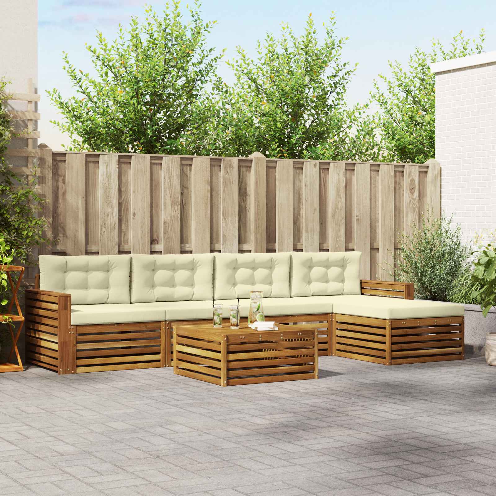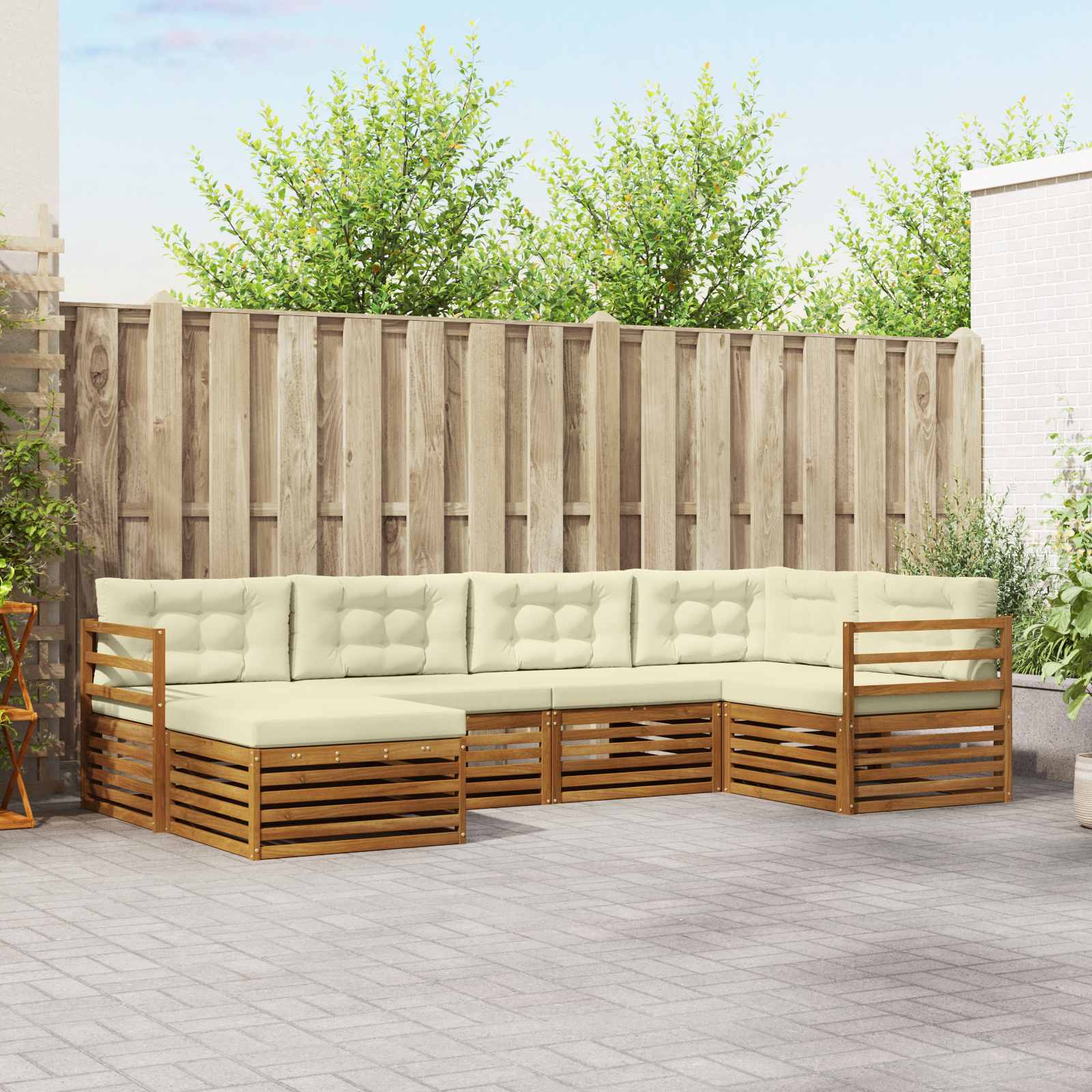 Tento venkovní pohovkový set je tady, aby dodal moderní šmrnc každé zahradě, terase nebo okolí bazénu. Vyrobený z masivního akáciového dřeva se hrdě pyšní teplou hnědou barvou a skvěle ladí s přírodou kolem. Čisté linie a strukturovaný design vytvářejí elegantní vzhled, který je praktický i příjemný. Je ideální pro lenošení nebo společenské akce, pružně se přizpůsobí jakémukoli venkovnímu prostředí. Masivní akáciové dřevo: Tento pohovkový set je vyroben z kvalitního akáciového dřeva, které je super odolné pro venkovní použití. Odolává plísním a hmyzu, takže je to skvělá volba pro každý prostor. Dlouho ti vydrží, i když se počasí mění. Modulární všestrannost: Díky modulárnímu designu si můžeš tento set uspořádat přesně podle sebe. Každý díl se dá přestavit, ať už potřebuješ malý koutek pro dva nebo prostor pro více lidí. Uživatelé si tak mohou najít to nejlepší sezení pro posedávání nebo odpočinek. Stylová lamelová opěradla: Lamelová opěradla neznamenají jen styl, ale také pomáhají s ventilací, takže ti bude příjemně i během horkých slunečných dní. Ergonomický tvar poskytuje pohodlné opření, ideální pro dlouhé sezení. Rovnoběžné lamely dodávají hezkou vizuální konzistenci, která se skvěle hodí k modernímu stylu. Integrované opěrky: Silné opěrky z masivního akáciového dřeva jsou navrženy tak, aby byly pohodlné a užitečné. Široké opěrky jsou perfektní pro odkládání nápojů nebo drobností. Tento praktický prvek zvyšuje pohodlí a činí pohovku ideálním místem pro relaxaci. Snadná údržba: Tenhle set se snadno udržuje s minimálním úsilím. Pravidelně ho otírej vlhkým hadrem na prach, a když ho nepoužíváš, dej na něj kryt, aby se ochránil před sluncem a špatným počasím.