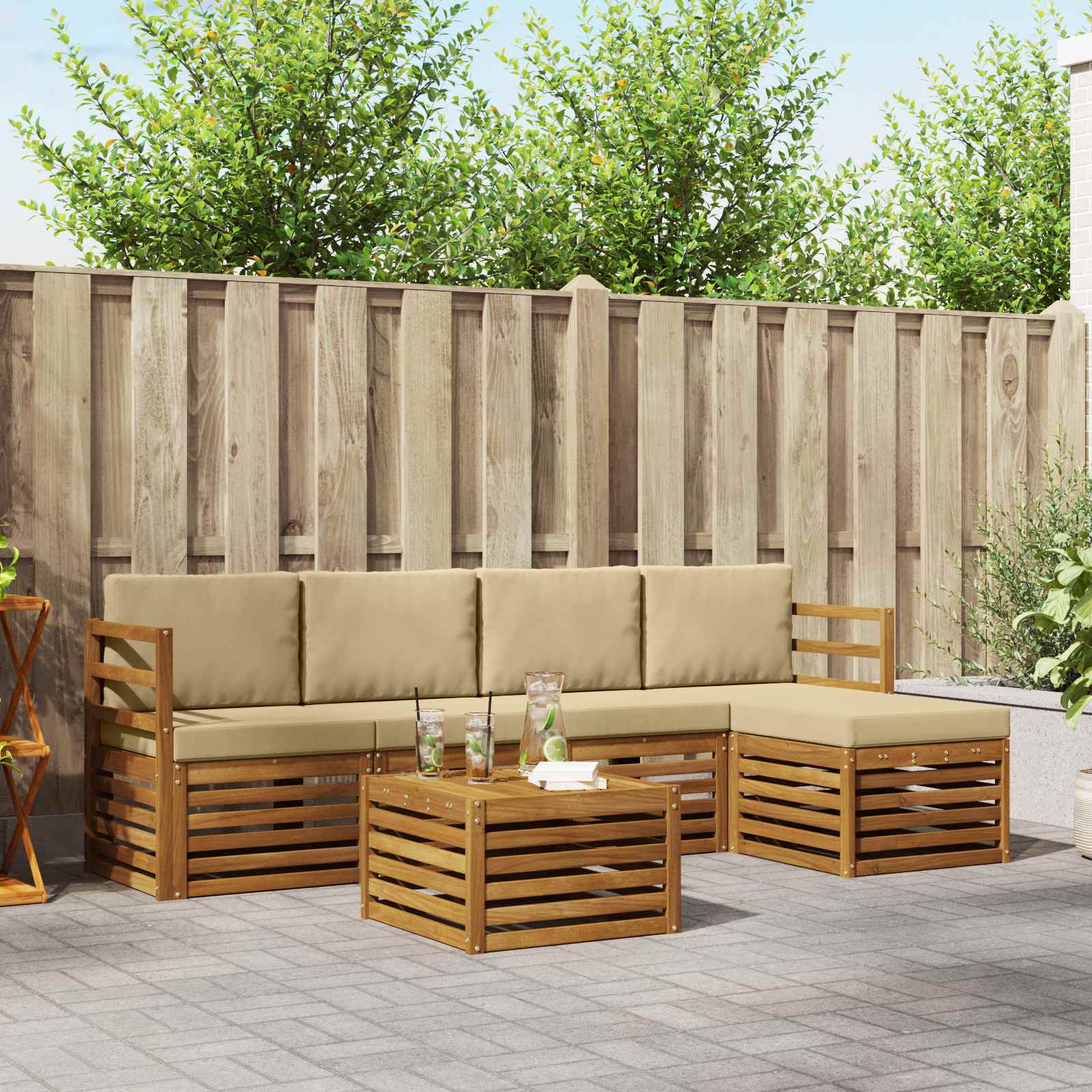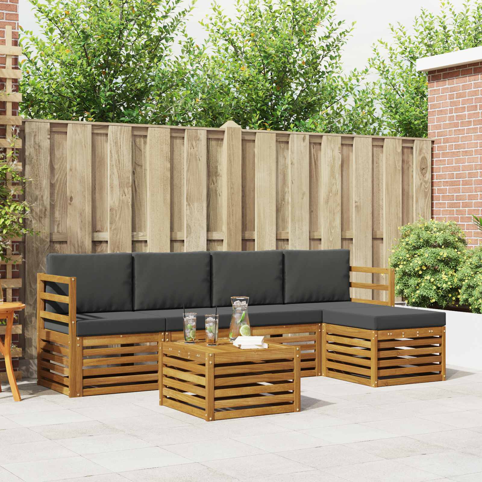 Sada venkovního nábytku spojuje styl a užitečnost, čímž vytváří skvélé centrum pro každou zahradu nebo terasu. Moderní design s čistými liniemi a minimálními detaily dodává eleganci a podporuje pohodové venkovní večery a sešlosti s přáteli. Vyrobená výhradně z masivního akáciového dřeva, sada zajišťuje dlouhou životnost a atraktivní vzhled, takže se hodí pro každého, kdo hledá kombinaci praktičnosti a stylu. Odolné masivní akáciové dřevo: Tato venkovní souprava nábytku je z akáciového dřeva, které je známé pro svou odolnost. Pevná konstrukce zaručuje spolehlivost a stabilitu, zatímco teplý přírodní tón skvěle doplní jakoukoli zahradu nebo terasu. Odolný design proti povětrnostním podmínkám: Tento set má ochraný lak, který chrání před sluncem, lehkým deštěm a jinými venkovními vlivy. Leštěný povrch zachovává jak vzhled, tak funkčnost, což zajišťuje dlouholetou výdrž pro vaši zahradu, terasu nebo dvorek. Komponenty a design: Každý kus, včetně područek a opěrek, je navržen pro styl a funkčnost. Dodatečné prvky zaručují pohodlí a celkový design vytváří vizuálně harmonickou sestavu ideální pro různé venkovní akce. Pohodlí a variabilita: Modulární design nabízí flexibilní uspořádání, které se hodí pro různé prostory a potřeby. Ideální pro odpočinek, sešlosti nebo klidné čtení – tento set se přizpůsobí každému venkovnímu prostředí a maximalizuje pohodlí. Snadná údržba a péče: Aby byl nábytek v top stavu, stačí otřít povrch vlhkým hadříkem a vyhnout se drsným čisticím prostředkům. Pravidelná péče pomáhá zachovat jeho vzhled a prodlouží životnost výrobku.