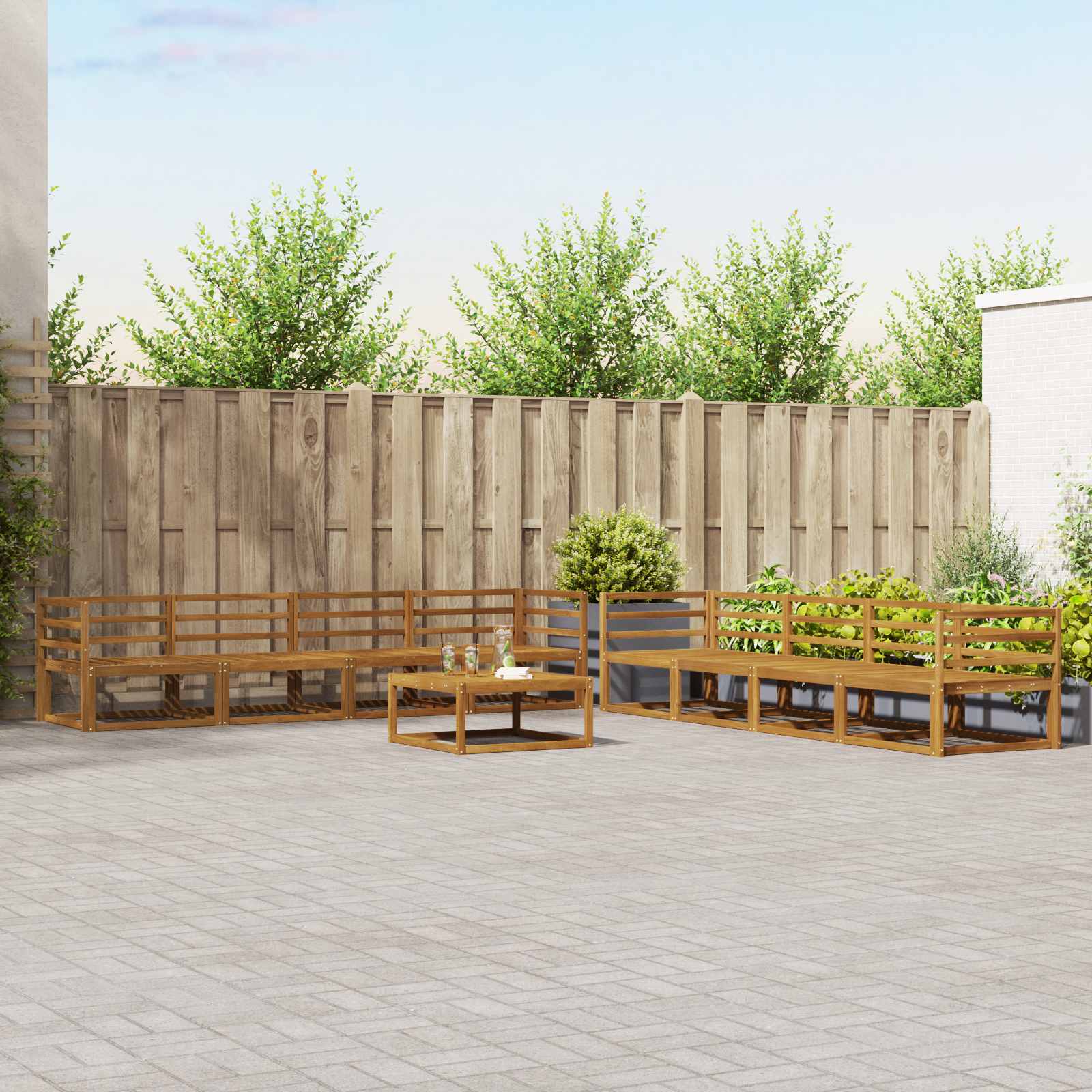 Tento skvělý venkovní sedací set změní každou zahradu, patio, dvorek nebo místo u bazénu na moderní oázu pohodlí a stylu. Je vyrobený z masivního akáciového dřeva, které je bytelné a krásné. Set je vehned tonovaných barvách a má jednoduchý design. Jeho přívětivá silueta vás vybízí k relaxaci nebo ke společenskému setkání. Ať už plánujete zahradní párty, nebo hledáte klidné místo na odpočinek, tento set skvěle spojuje praktičnost a estetiku, vytváří příjemný venkovní zážitek. Akáciové dřevo: Celý set je z masivního akáciového dřeva. Je odolné a krásné, zajišťuje dlouhou životnost a přirozený vzhled. Jeho úžasná struktura a odstín skvěle sednou do přírody a dodávají rustikální šarm. Pevný lamelový rám: Tento set je odolný, s robustním rámem a dokonalým odtokem vody. Dává mu to dlouhou životnost a pohodlí. I pod sluncem a deštěm si zachovává skvělý vzhled. Odolnost vůči povětrnostním vlivům: Tento set vám vydrží, chrání ho před deštěm i slunečním zářením. I při bouřkách si zachovává svého vzhled a funkčnost. Snadné sestavení: Sestavení je jednoduché, stačí šroubovák a pomoc. Krok za krokem instrukce to usnadní, takže se rychle můžete soustředit na užívání nového nábytku. Péče o set: I když je odolný, pravidelná péče prodlouží jeho krásu. Používejte ochranné potahy a občas otřete vlhkým hadříkem, aby vydržel co nejdéle.