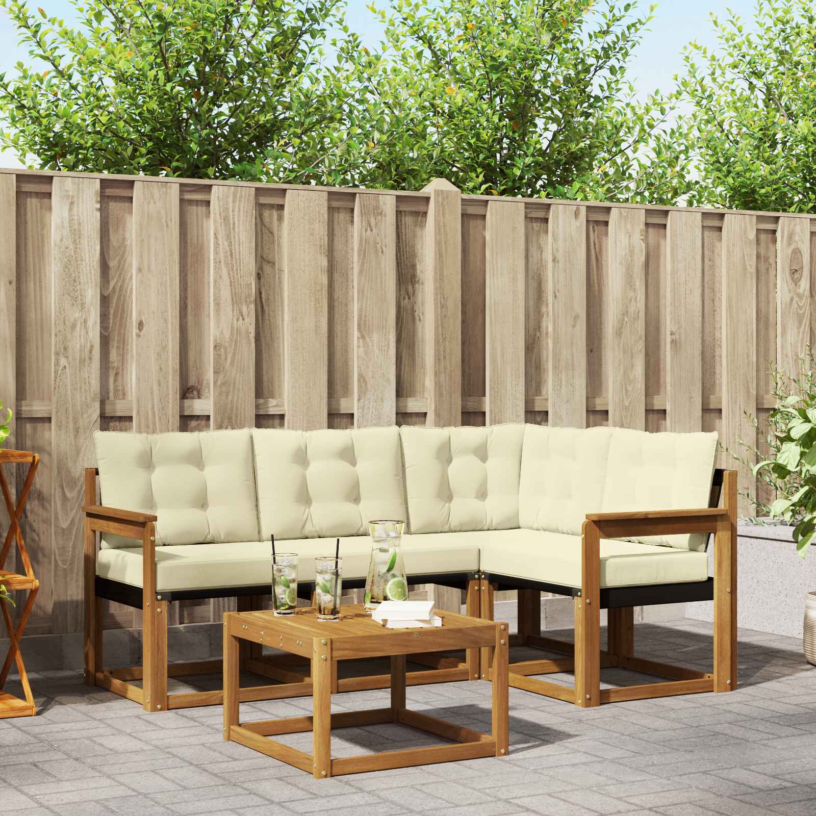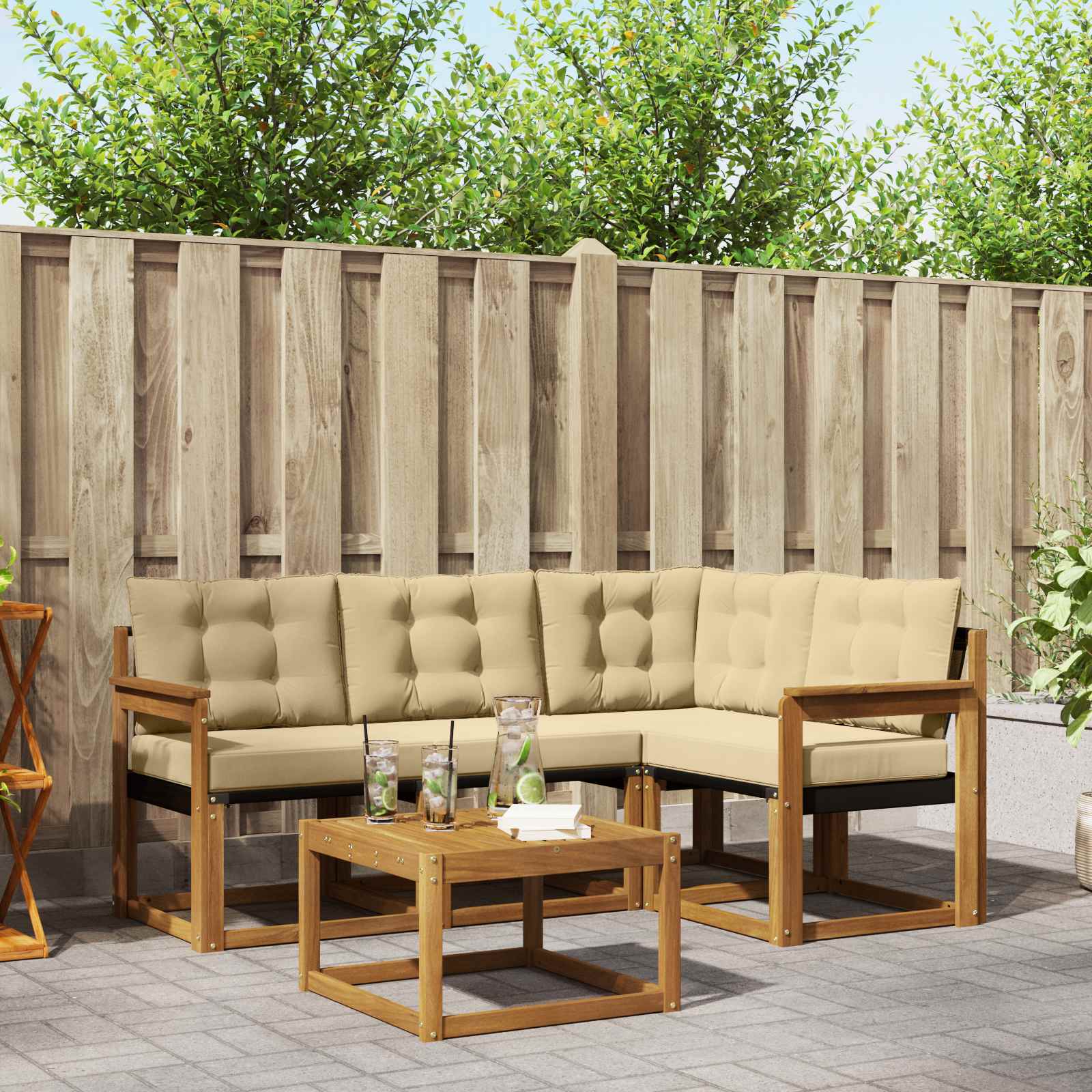 Venkovní pohovková souprava 4 pcs Přirozená a Krémová