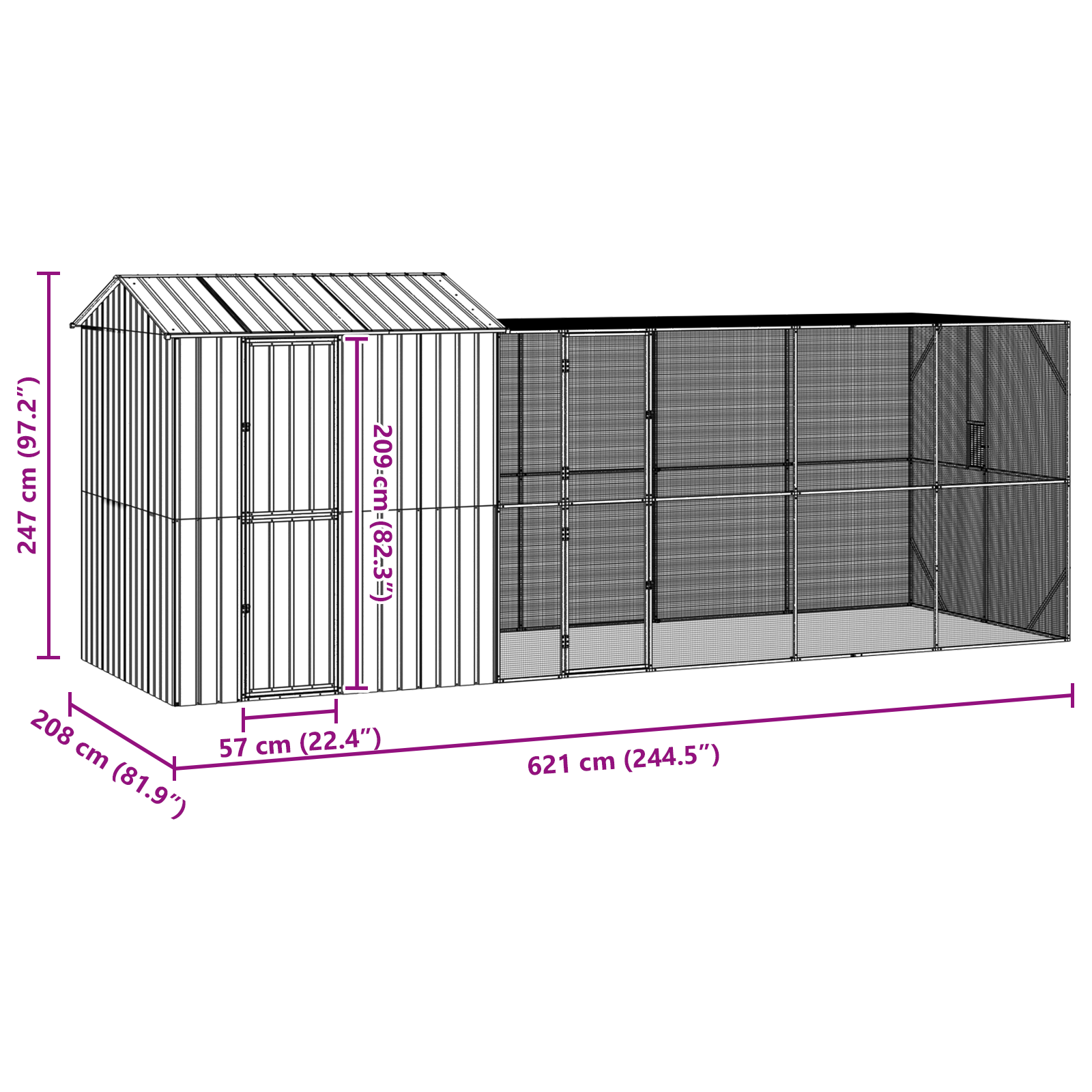 Tahle obdélníková venkovní klec pro ptáky je parádní biotop pro vaše chlupaté kamarády, navržená v moderním stylu, který se hezky hodí do zahrad a na terasy. Je prostorná, nabízí spoustu míst na sezení a odpočinek, a přitom zachovává čistý a moderní vzhled. S jemným antracitovým odstínem poskytuje nejen bezpečné místo, ale i hezký pohled, co obohatí každou venkovní plochu.