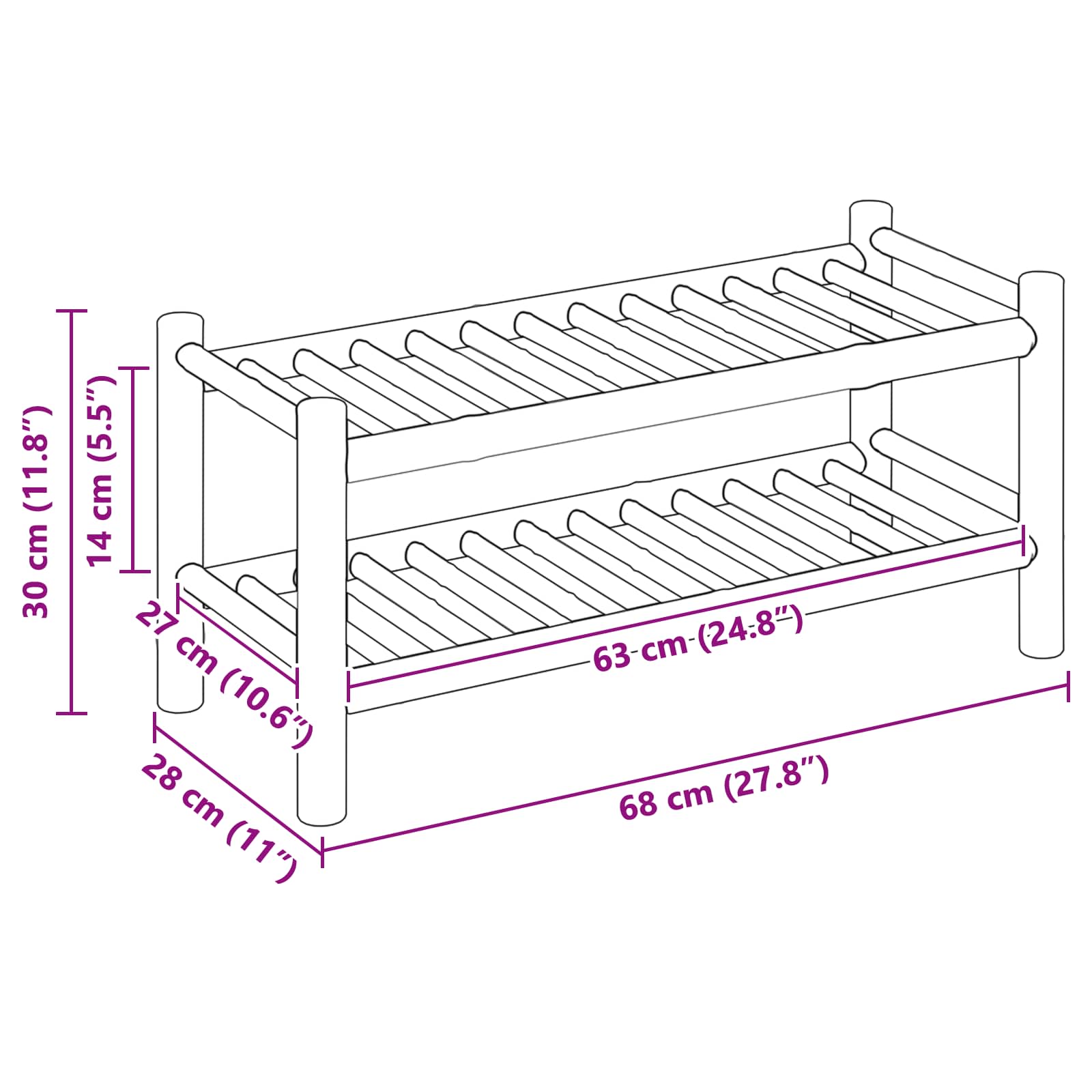Tento stojan na boty je ideální pro organizaci a nabízí skvélé spojení praktičnosti a estetiky, perfektní pro moderní domovy. Jeho obdélníkový tvar a přírodní barvy ho činí nádherným doplňkem do vaší chodby, čímž pomáhá vyřešit chaos, který boty často způsobují.