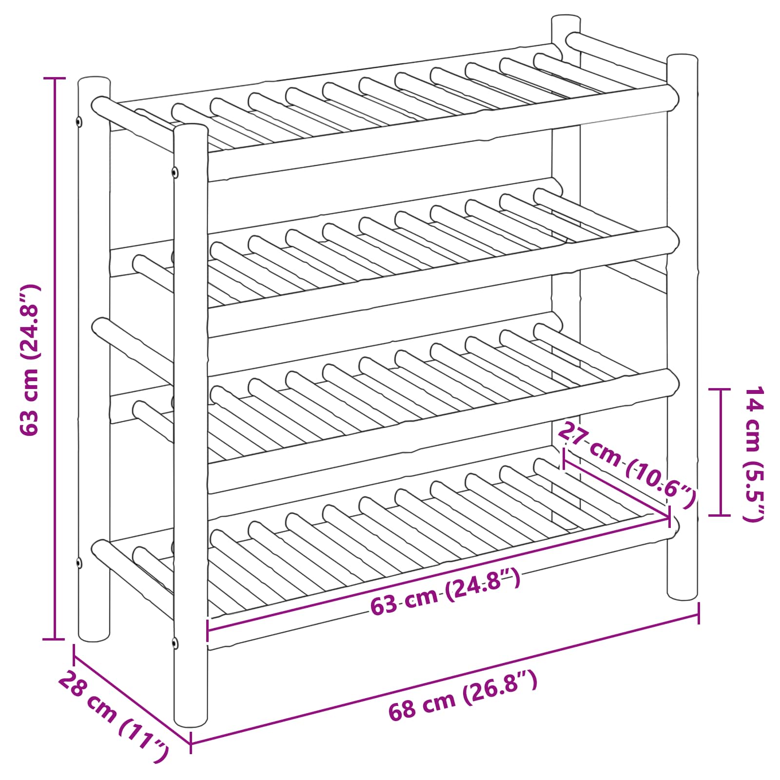 Tento stojan na boty je ideální pro organizaci a nabízí skvélé spojení praktičnosti a estetiky, perfektní pro moderní domovy. Jeho obdélníkový tvar a přírodní barvy ho činí nádherným doplňkem do vaší chodby, čímž pomáhá vyřešit chaos, který boty často způsobují.
