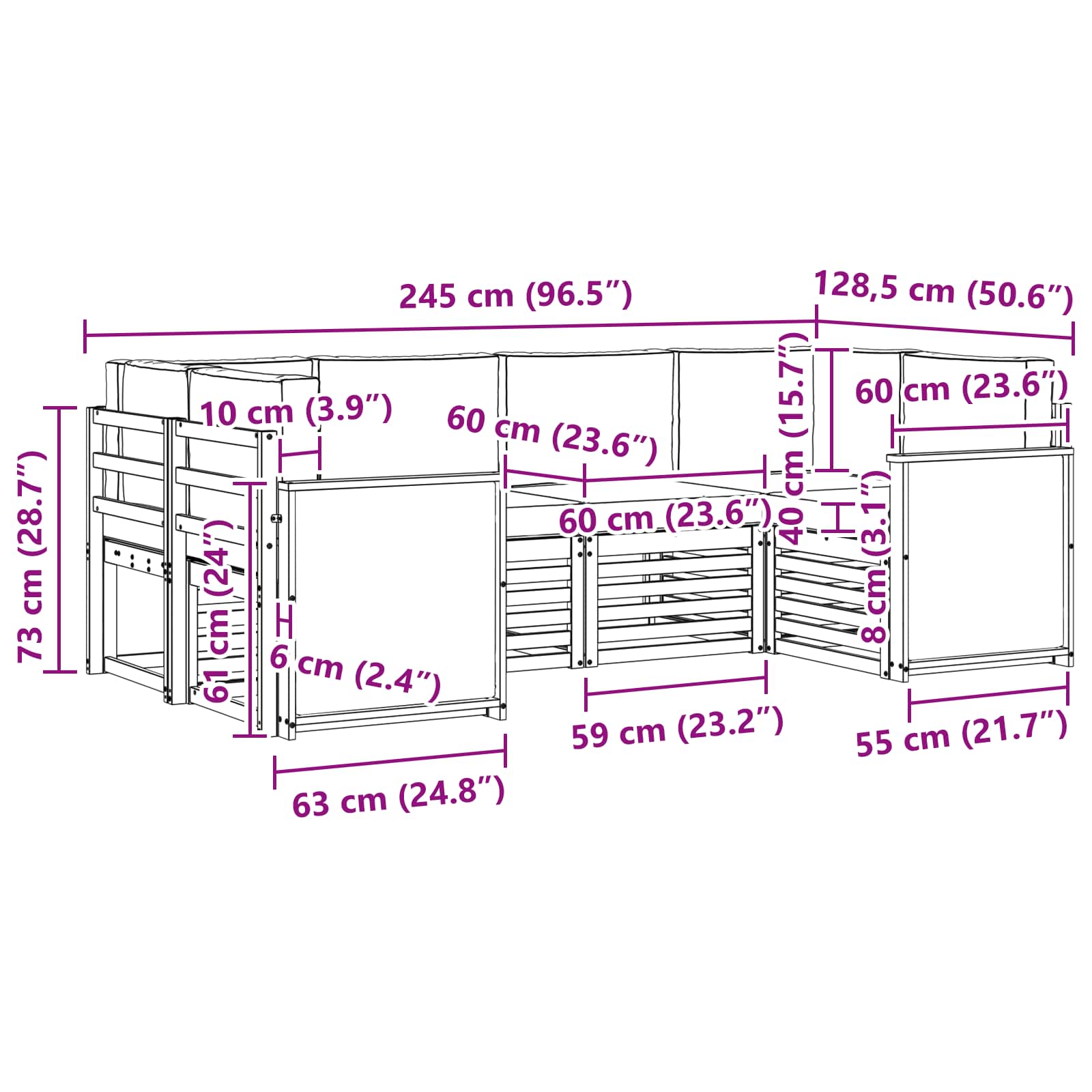 Tahle venkovní souprava nábytku kombinuje styl a funkčnost a stává se skvělým prvkem pro každou zahradu nebo terasu. Moderní design s jednoduchými liniemi dodává eleganci a podporuje relaxaci a setkávání venku. Celá souprava je vyrobená z masivního akáciového dřeva, takže je odolná a vizuálně pěkná – ideální pro ty, kteří chtějí praktičnost a sofistikovaný vzhled.