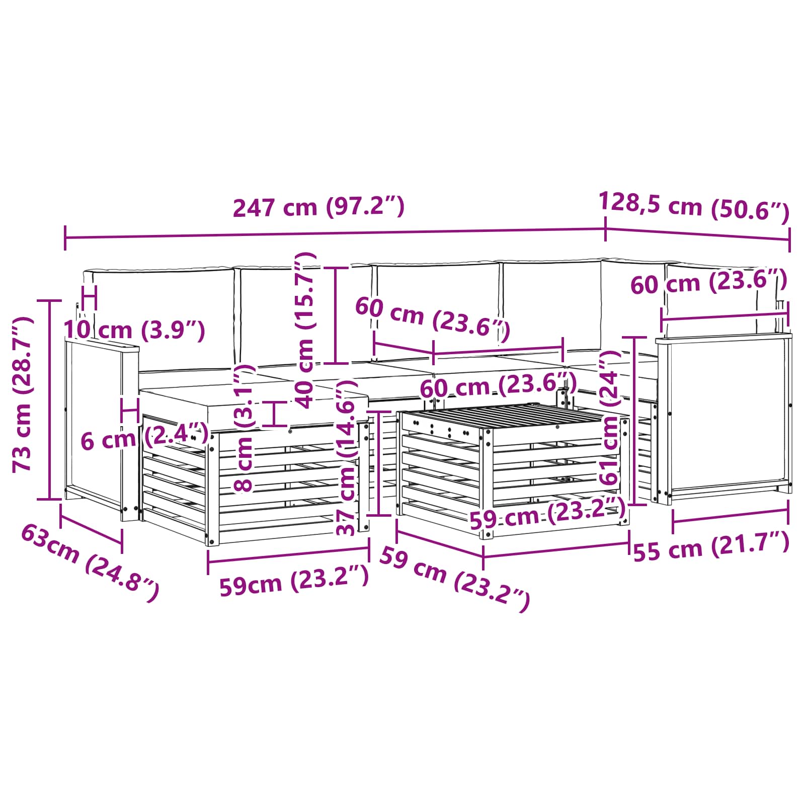 • 6 x Sedací polštář: 60 x 60 x 8 cm (D x Š x V)