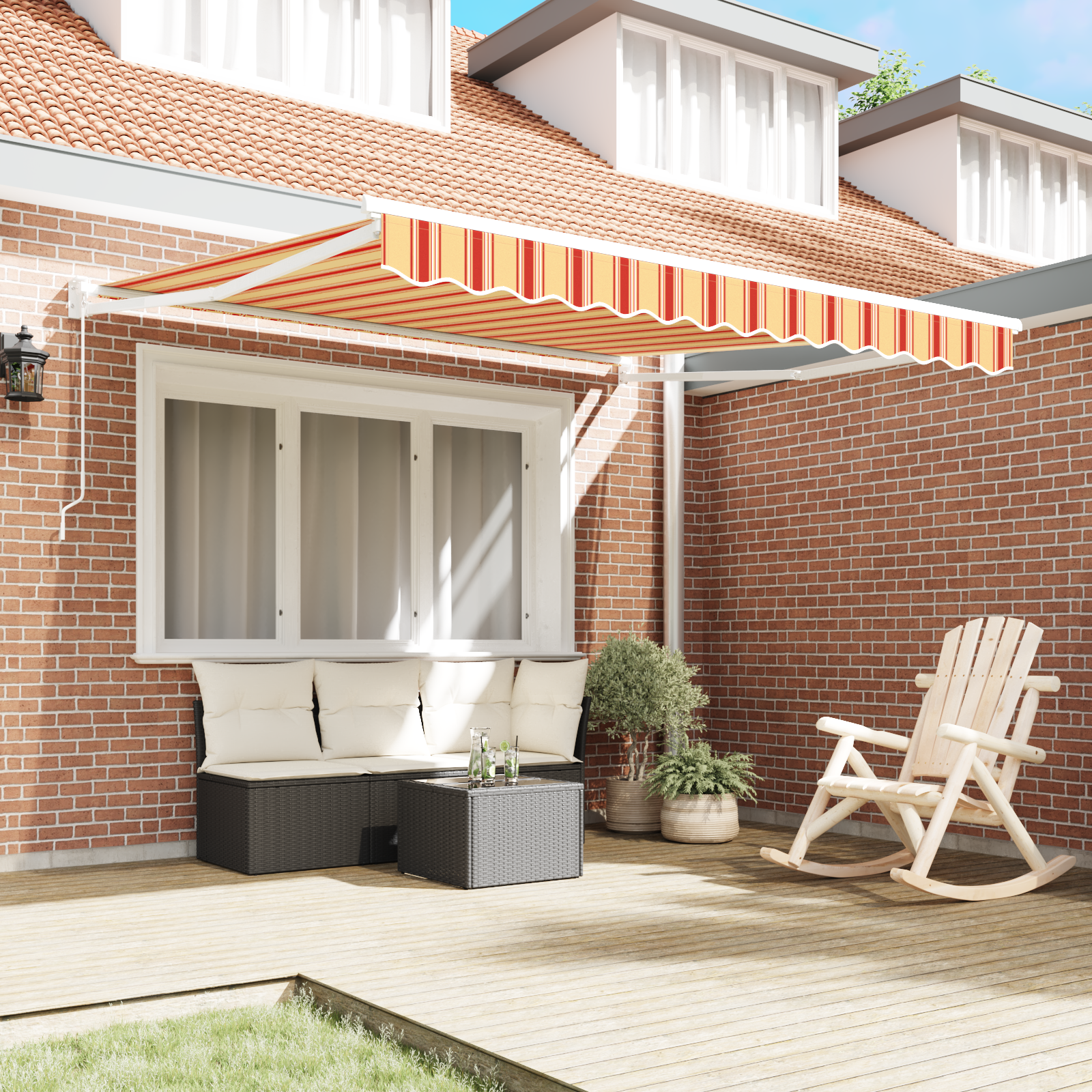 Tahle moderní výsuvná markýza je super venkovní stínění, ideální pro ty, co hledají stylový únik před sluncem. Její elegantní obdélníkový tvar výborně zapadne do každé moderní terasy či zahrady a je charakteristická jednoduchým, minimalistickým designem. Snadno se vysune a nabízí универсální prostor, ideální na letní večírky nebo relaxaci. Vyrobená ze 100% polyesteru, markýza dodává současný pocit a chrání vás před silným slunečním světlem. Není to jenom stín, je to stylový prvek pro vaše venkovní prostory.