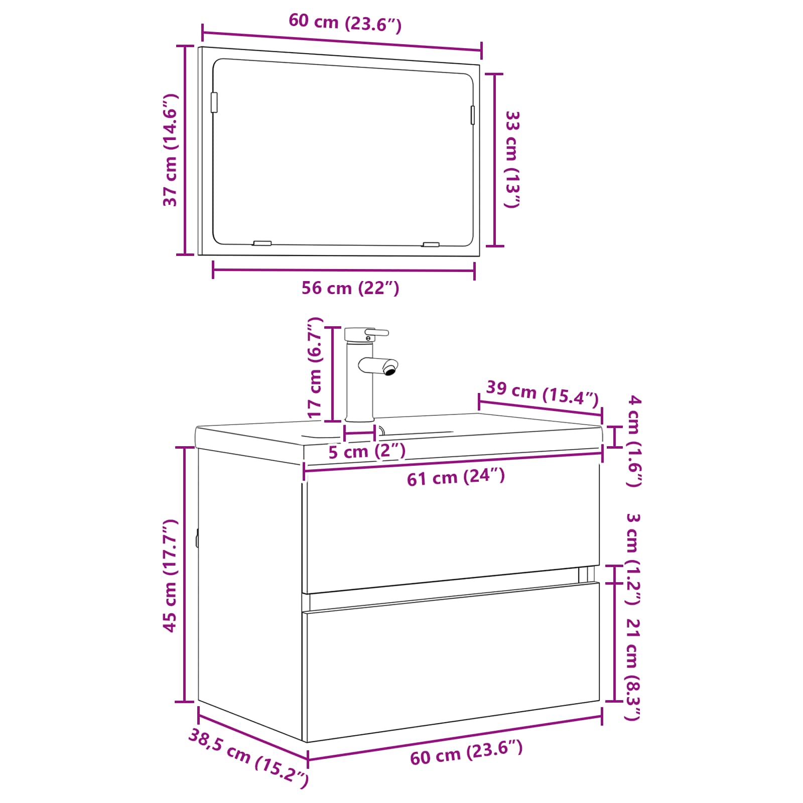 • 1 x Skříňka pod umyvadlo: 60 x 38,5 x 45 cm (DxŠxV)