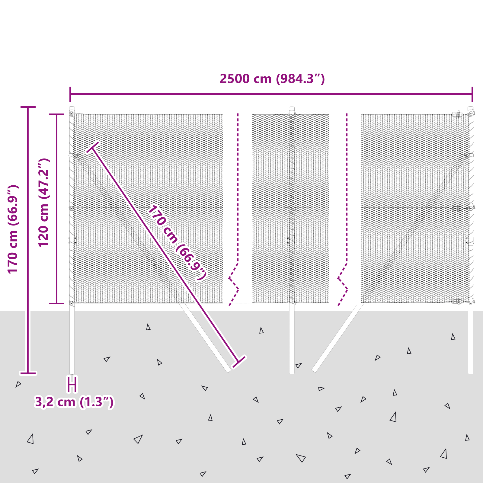 • Celkové rozměry: 2500 x 3,2 x 120 cm (D x Š x V)