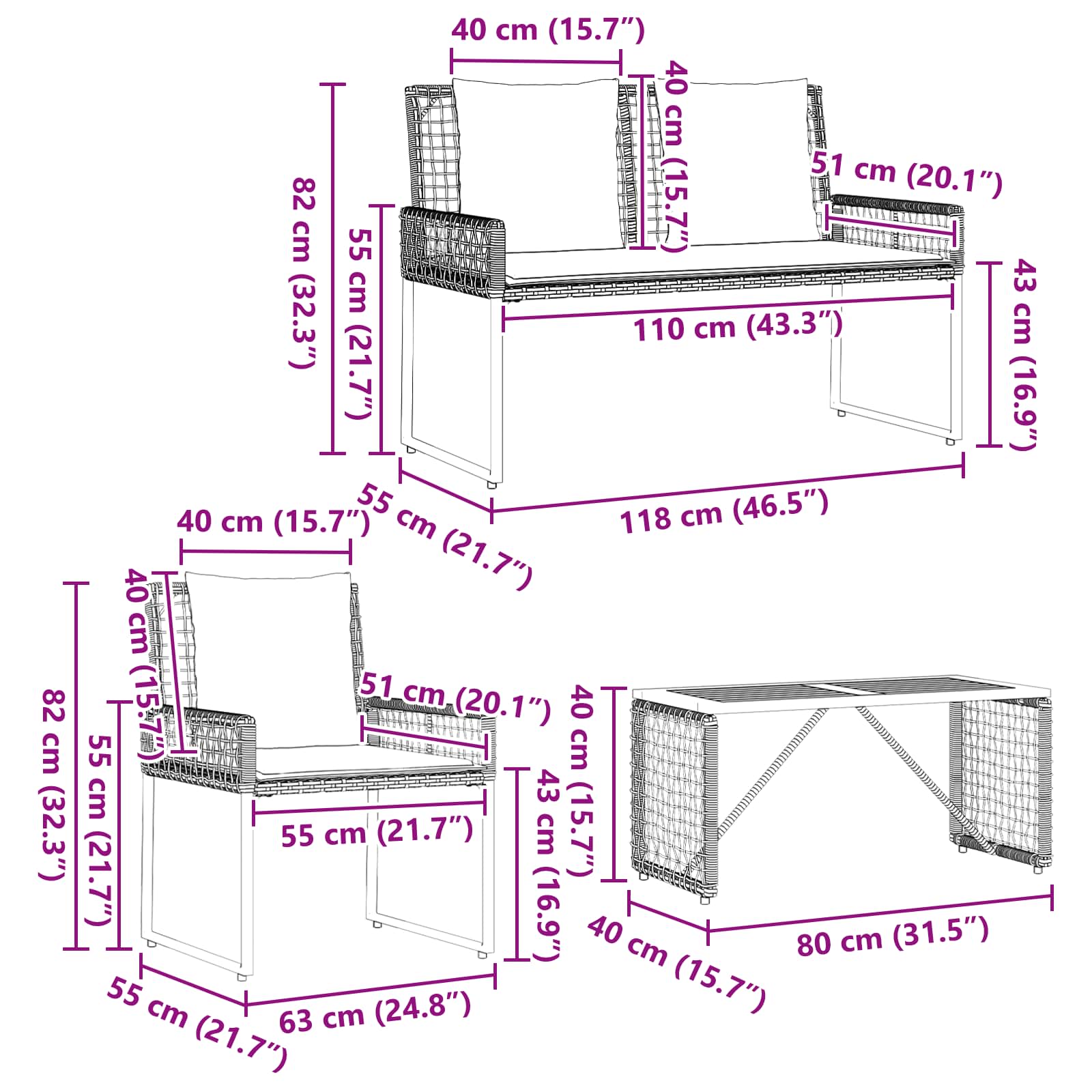 Tento moderní venkovní nábytek je tady pro ty, kteří chtějí pozvednout svou zahradu nebo terasu s stylem a funkčností. Ideální na jaro a léto, tento krásně vyrobený kousek nabízí rustikální kouzlo a zachovává si přirozenou krásu. Pečlivě vybraný poly ratan přináší šik a pohodový vzhled, zatímco elegantní pletený vzor dodává šmrnc jakémukoli venkovnímu uspořádání. Představte si poklidné odpoledne nebo živé večery ve vaší zahradě, které obohatí vaši venkovní zkušenost díky tomu všestrannému a elegantnímu setu, který je vhodný pro různé příležitosti a nastaví atmosféru.