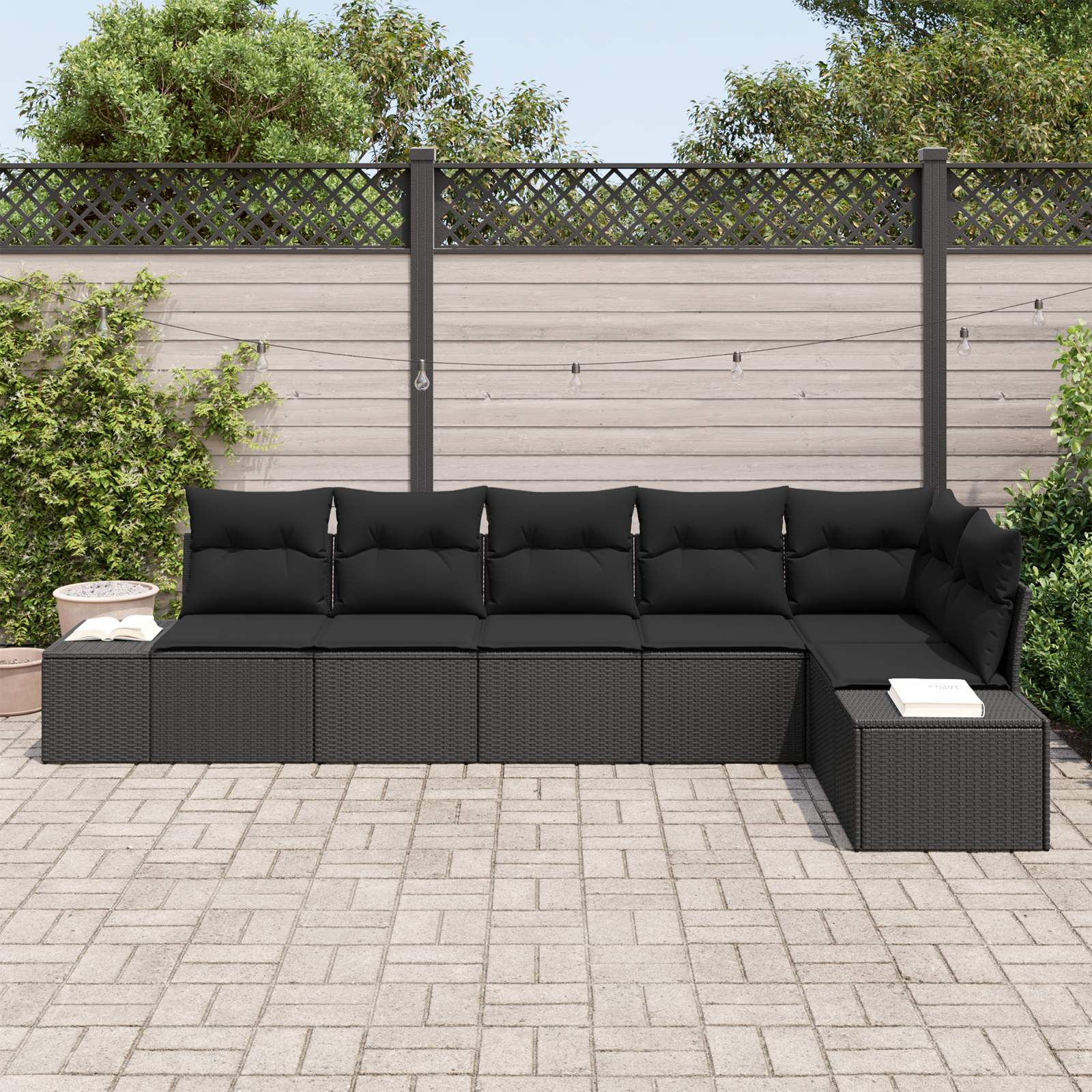 Tento modulární zahradní gauč na první pohled sladí moderní vzhled s praktičností, takže se skvěle hodí do jakékoli zahrady nebo outdoorového prostoru. Elegantní design vyniká čistými liniemi a multifunkčností, přesně jak se nosí v moderním bydlení. Je ideálním kouskem pro venkovní nadšence, kombinuje skvělý vzhled s funkčností a poskytuje luxusní místo na relaxaci. Skládá se z různých modulů, což umožňuje úpravu podle vašich představ a potřeb. Tento set dodává šarm a je perfektní pro setkání s přáteli nebo klidné chvíle o samotě, přičemž nabízí pohodlí i odolnost.