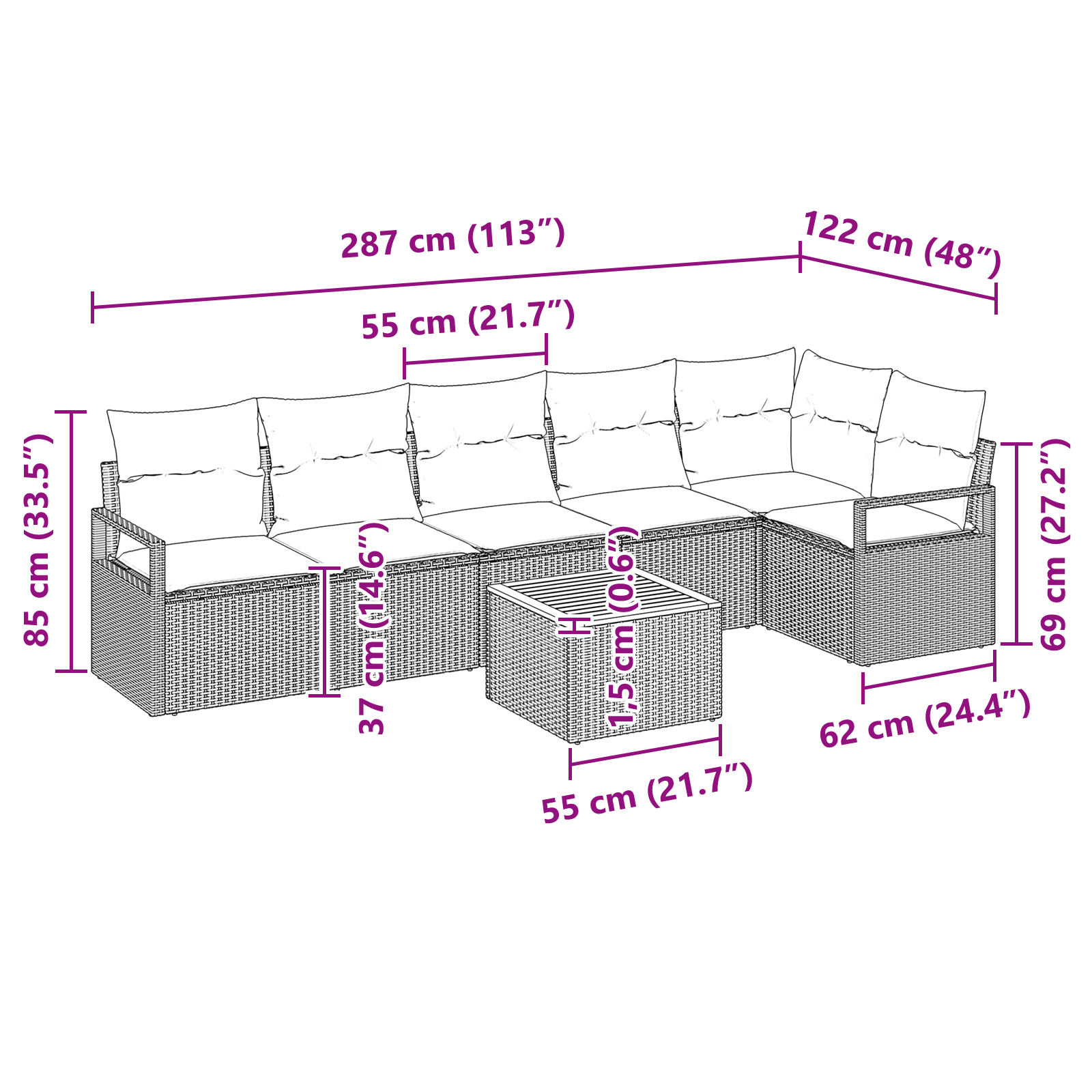 Tahle modulární zahradní sedací souprava spojuje moderní design s funkčností, nabízí super flexibilní uspořádání díky svým modulárním prvkům. Je určená pro venkovní použití a vyniká jednoduchým, avšak elegantním stylem, ideálním pro jarní a letní setkání. Zaručuje pohodlí a styl pro každou zahradu, terasu nebo prostoř.