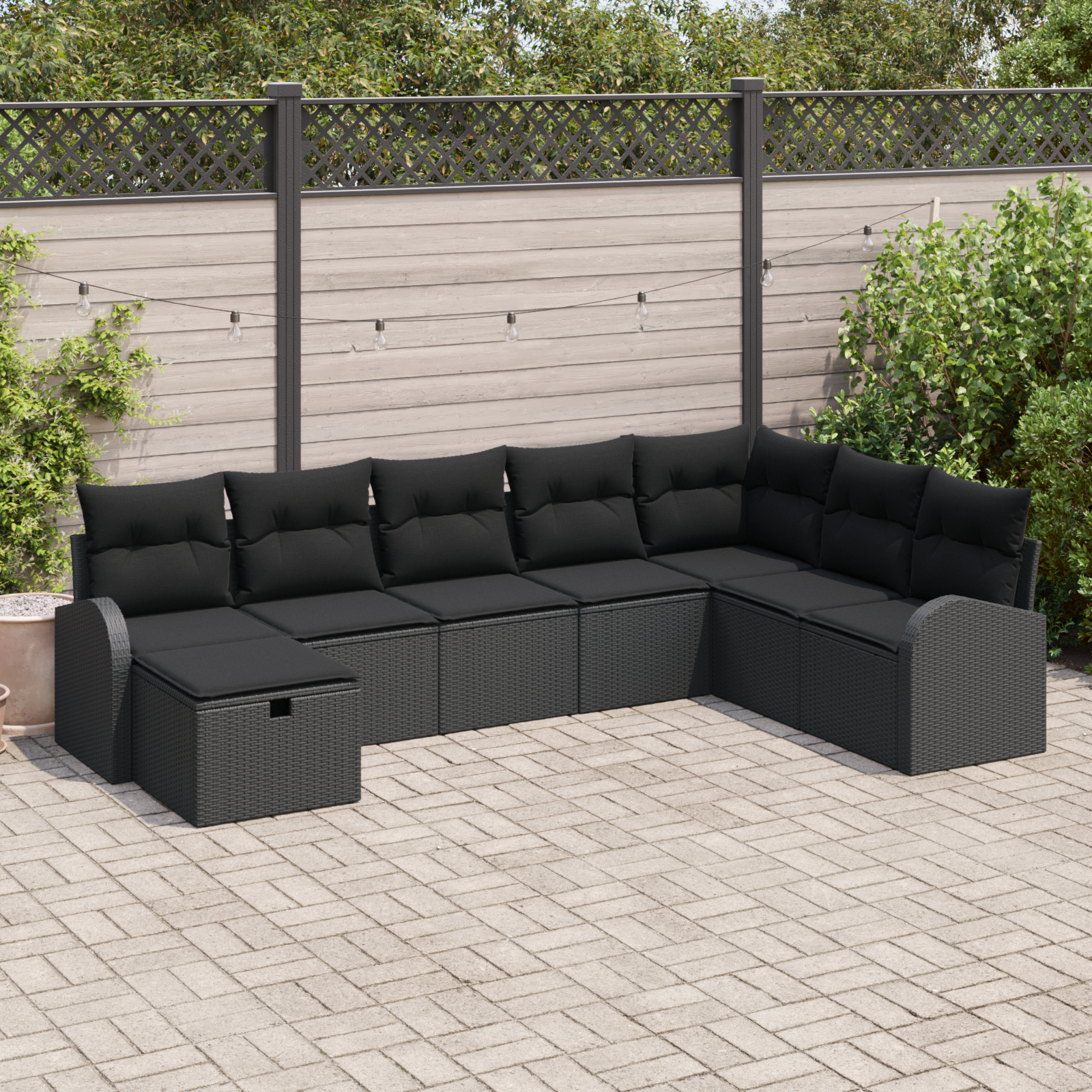 Sada zahradních pohovek s polštářem 8 pcs Černá Poly ratan