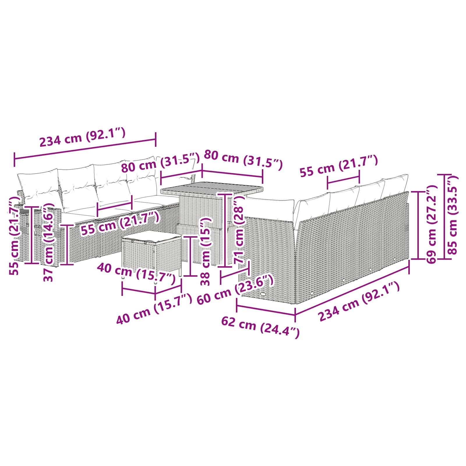Tenhle modulární zahradní pohovkový set je jak elegance venkovního stylu, tak také pohodlí. S moderním designem ozdobí každou zahradu nebo terasu a vytvoří útulné místo pro venkovní schůzky nebo samostané relaxace. Poly ratanový materiál dodává vzdušný vzhled, zatímco detaily z masivního akáciového dřeva přinášejí teplo a styl. Jeho modulární povaha umožňuje hrát si s uspořádáním, což ho dělá ideálním pro různé venkovní styly.