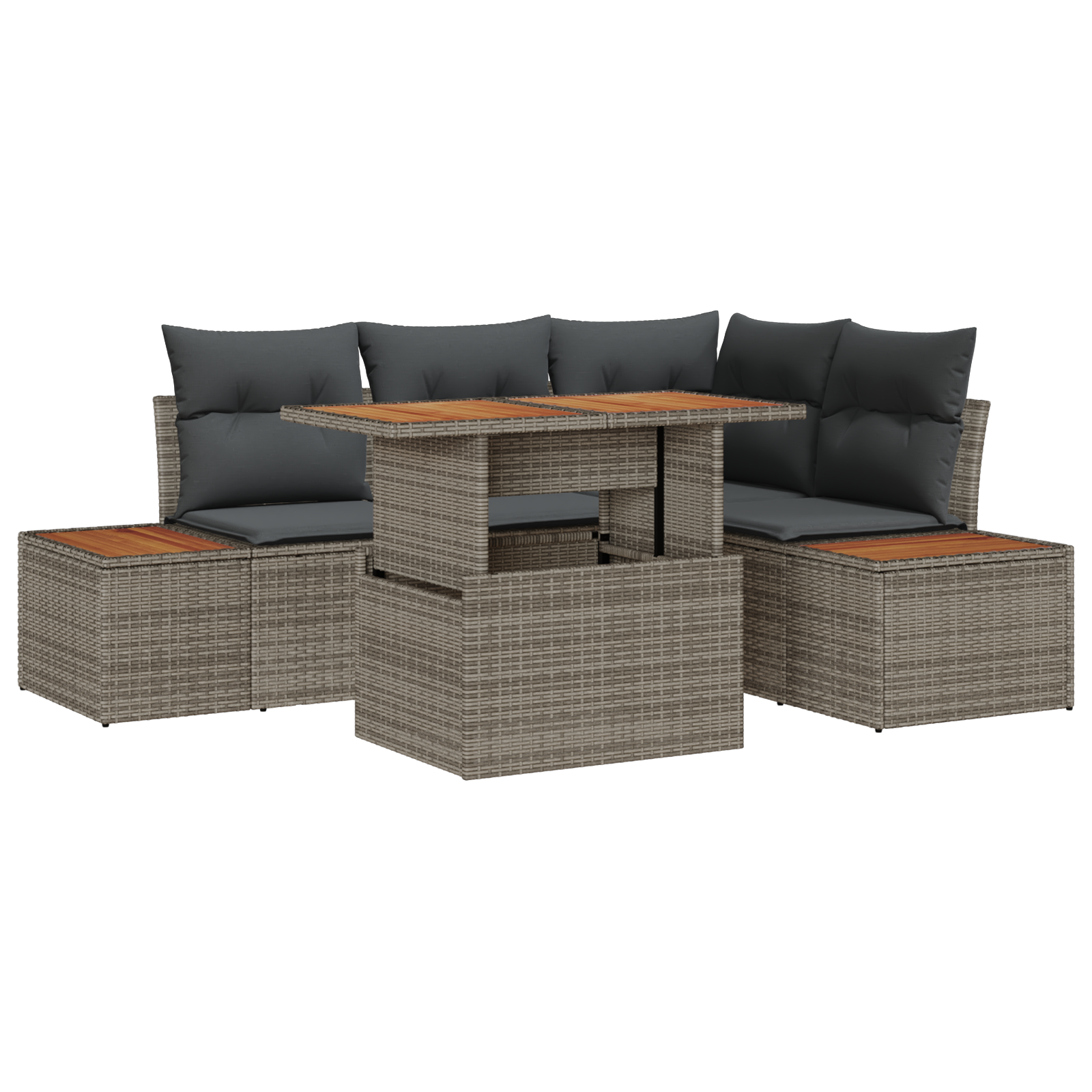 S tímto moderním ratanovým setem zažiješ styl v tvém venkovním prostoru. Je perfektní pro zahradní a terasové použití, poskytuje pohodlné sezení pro pět lidí a spojuje praktické funkce s moderním vzhledem. Ideální pro večírky nebo relaxaci, tento set kombinuje eleganci s pohodlím díky svému ergonomickému designu.