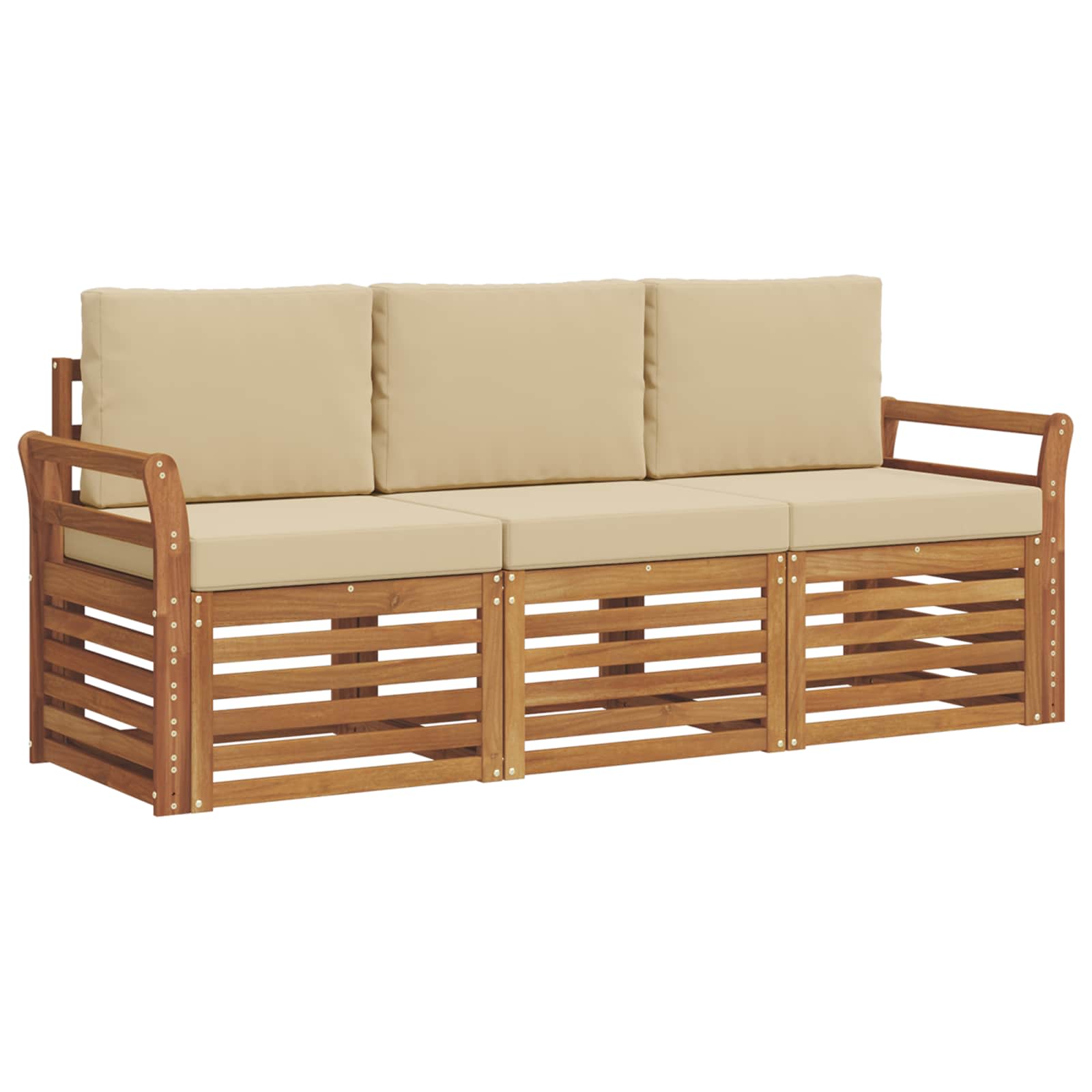 Sedací soupravy 3 pcs Přirozená a Béžová Masivní akátové dřevo