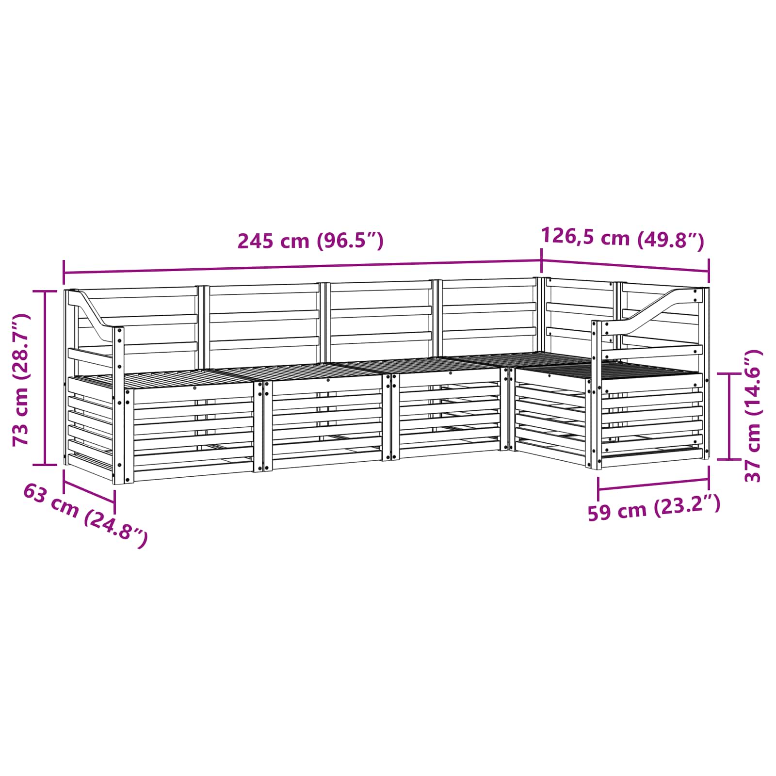 • 4 x Středová pohovka: 63 x 59 x 73 cm (D x Š x V)