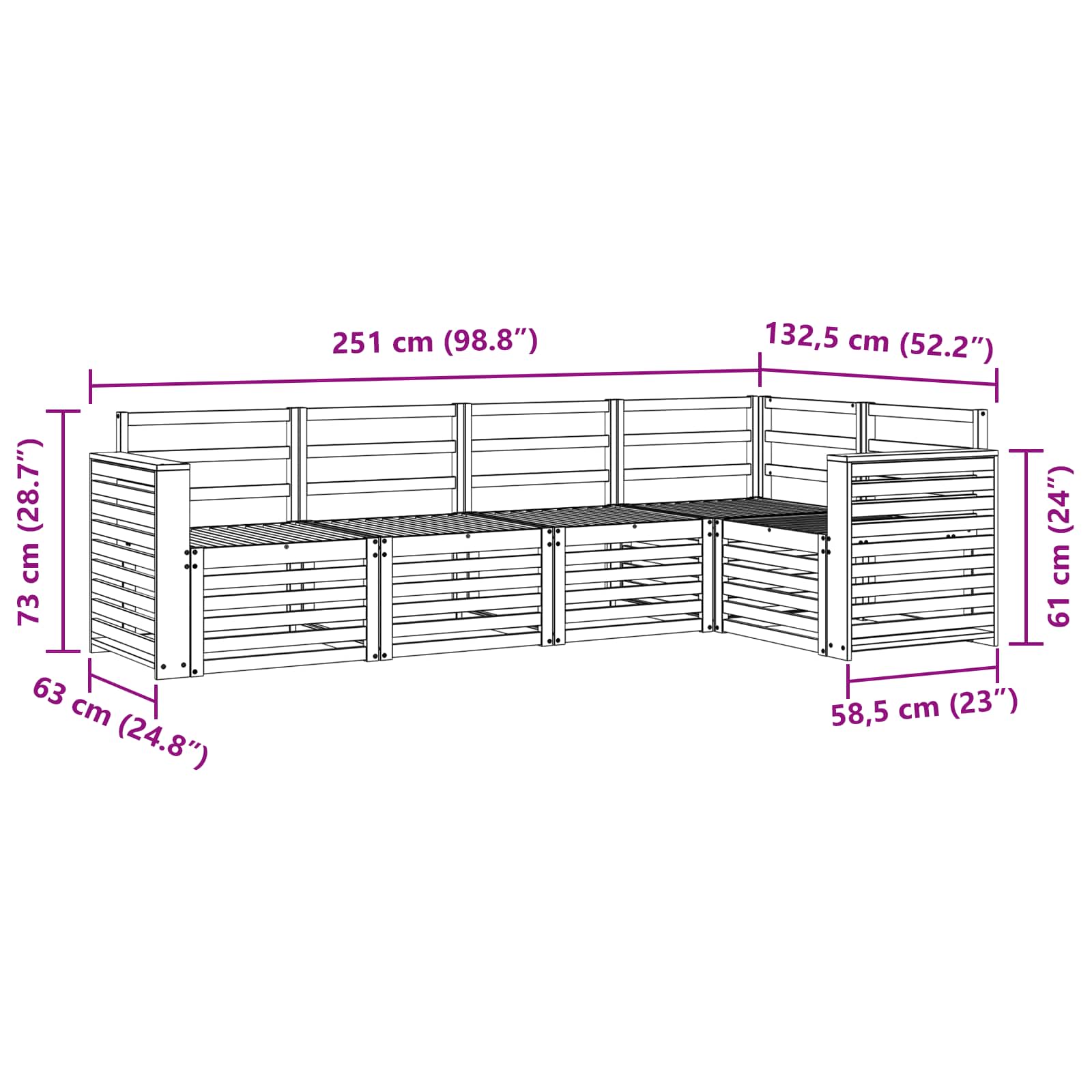 • 4 x Střední pohovka: 63 x 59 x 73 cm (D x Š x V)