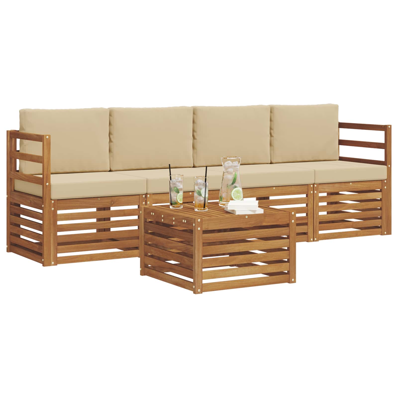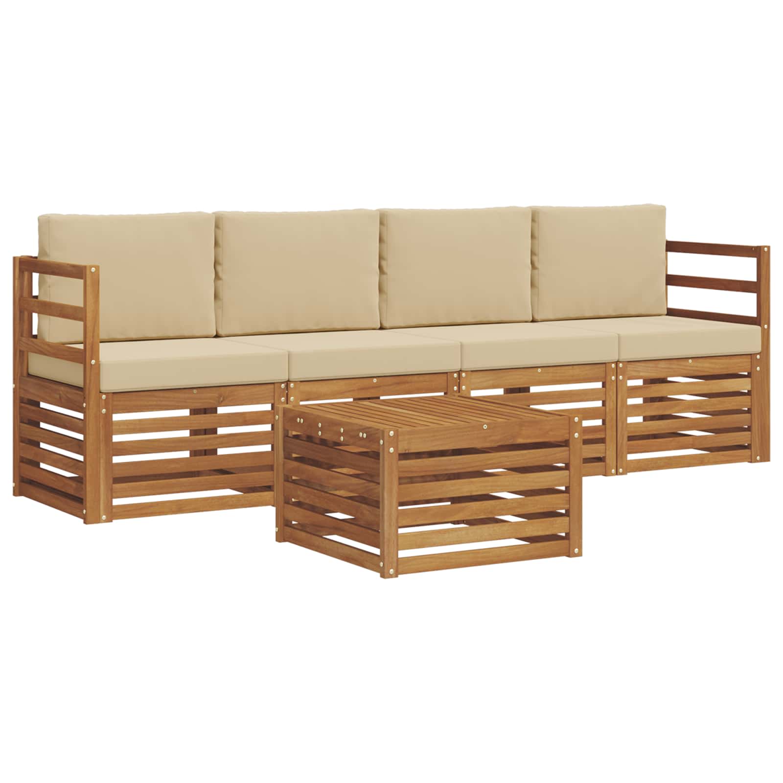 Sedací soupravy 5 pcs Přirozená a Béžová Masivní akátové dřevo