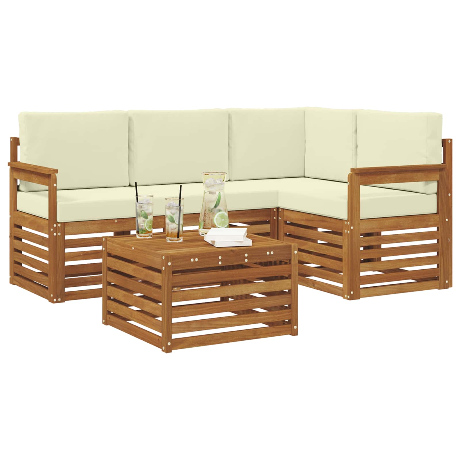 Tento set modulárních sedaček přináší moderní design a praktickou funkčnost, což ideálně obohatí každou zahradu, terasu, okolí bazénu nebo dvorek. Vyrobený z masivního akáciového dřeva s bohatou hnědou barvou, set vytváří příjemnou atmosféru. Jeho modulární povaha podněcuje vaši kreativitu a umožňuje snadno měnit uspořádání podle různých příležitostí, od intimních setkání až po velké oslavy.