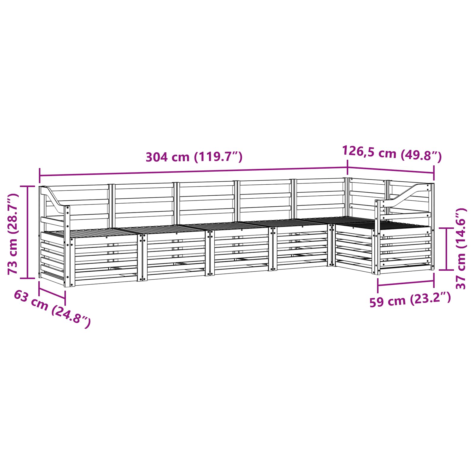• Celkové rozměry: 304 x 126,5 x 73 cm (D x Š x V)