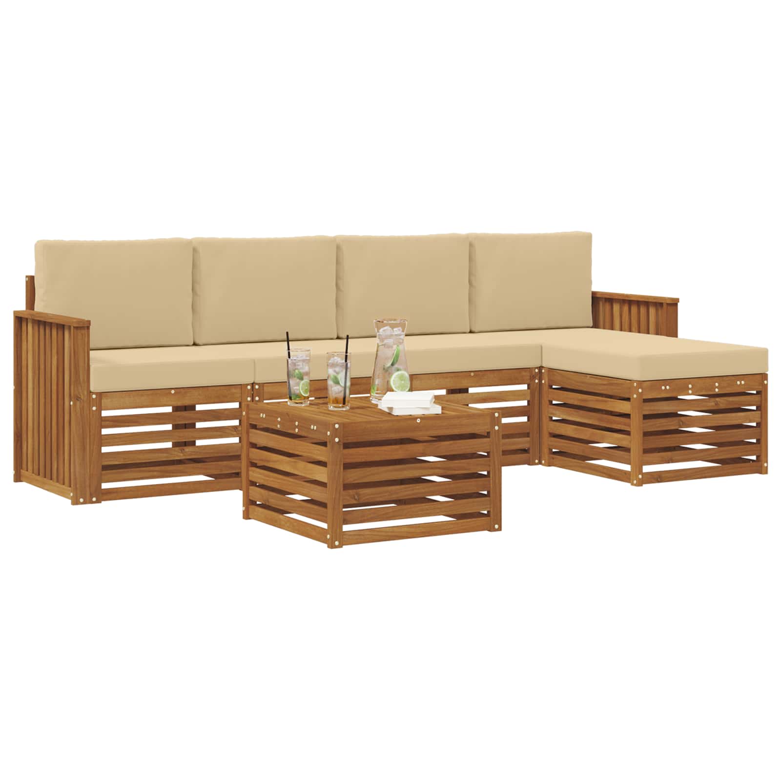 Sedací soupravy 6 pcs Přirozená a Béžová Masivní akátové dřevo