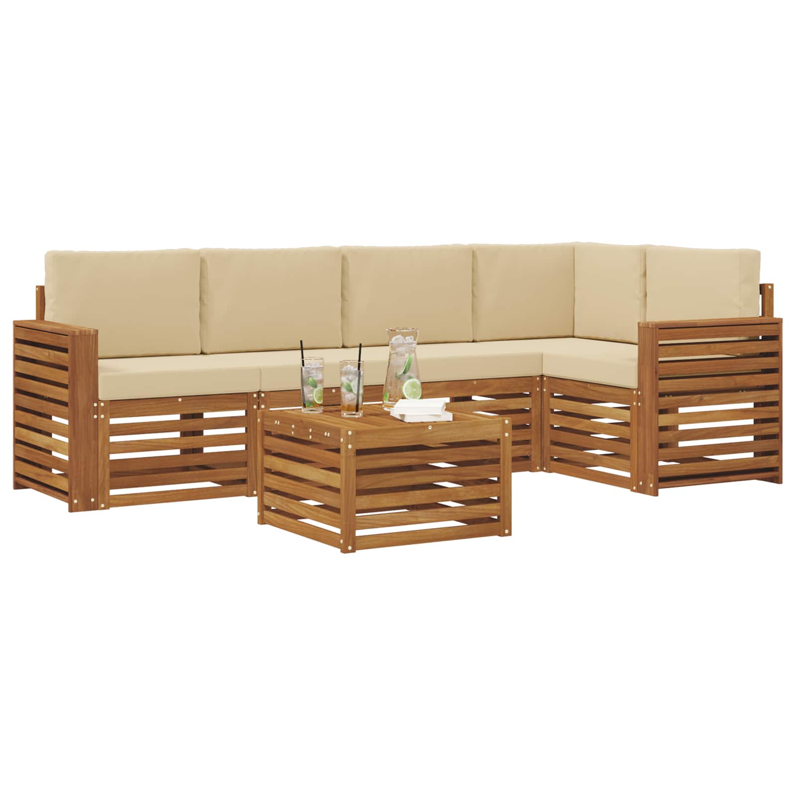 Sedací soupravy 6 pcs Přirozená a Béžová Masivní akátové dřevo