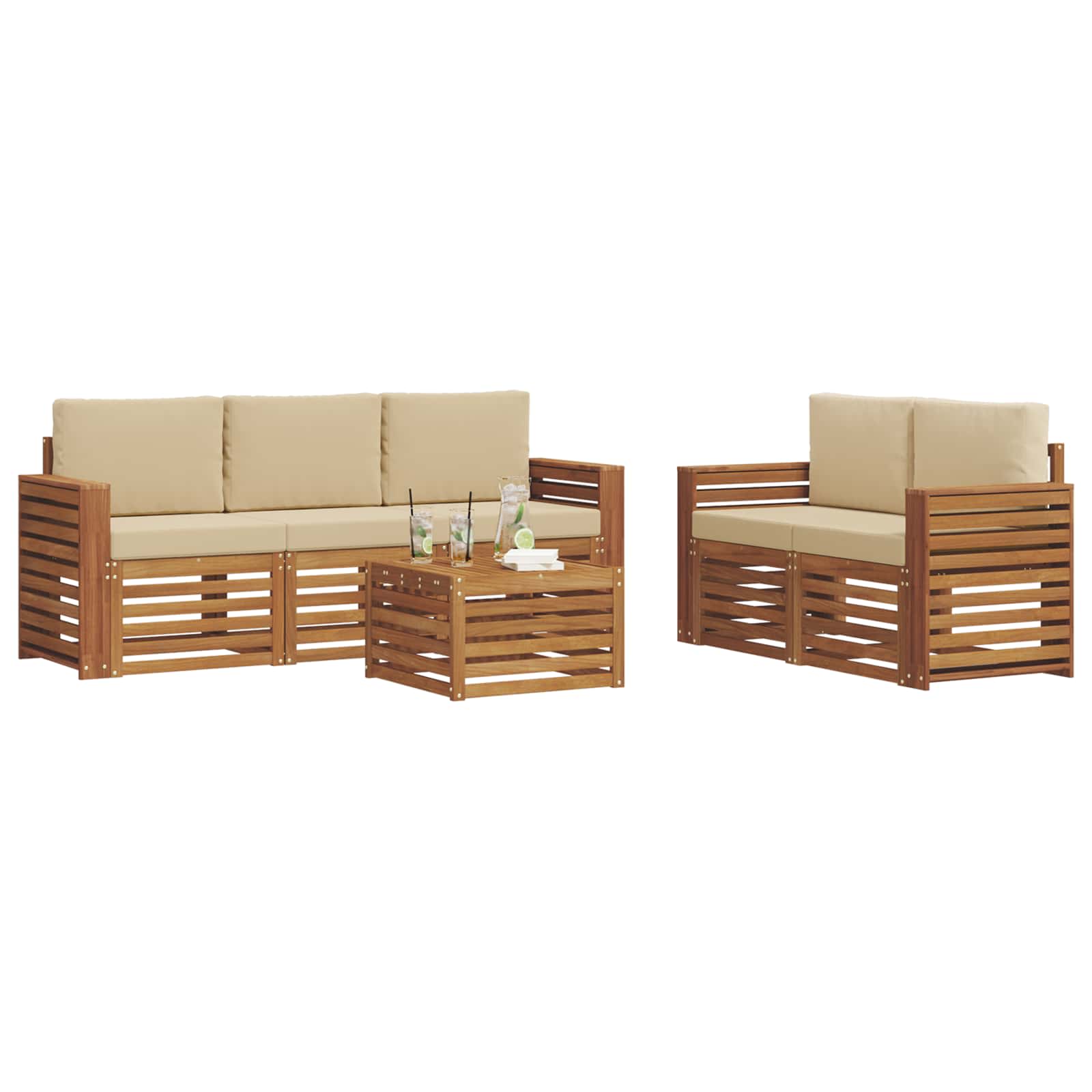 Sedací soupravy 6 pcs Přirozená a Béžová Masivní akátové dřevo