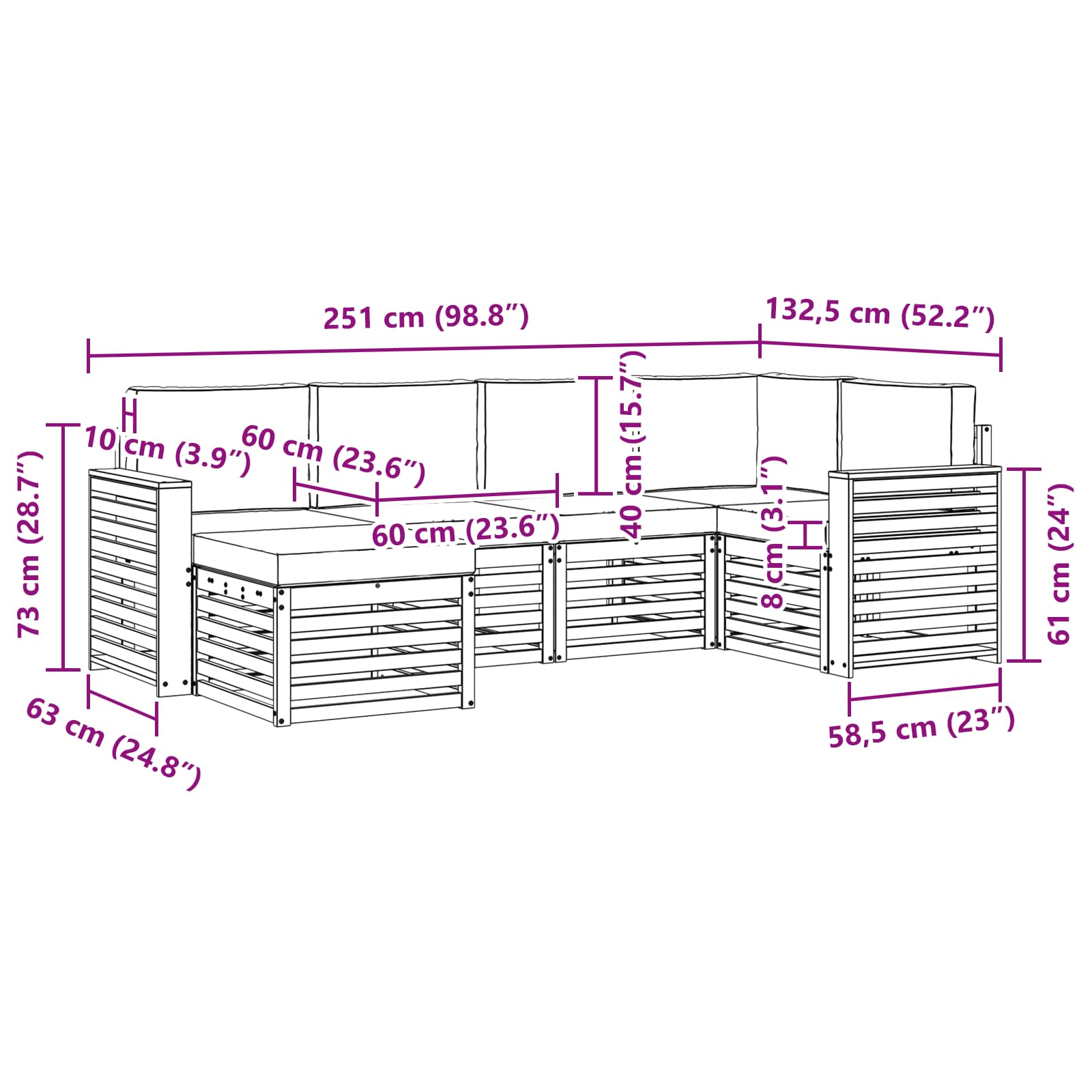 • 6 x Sedací polštář: 60 x 60 x 8 cm (DŠV)