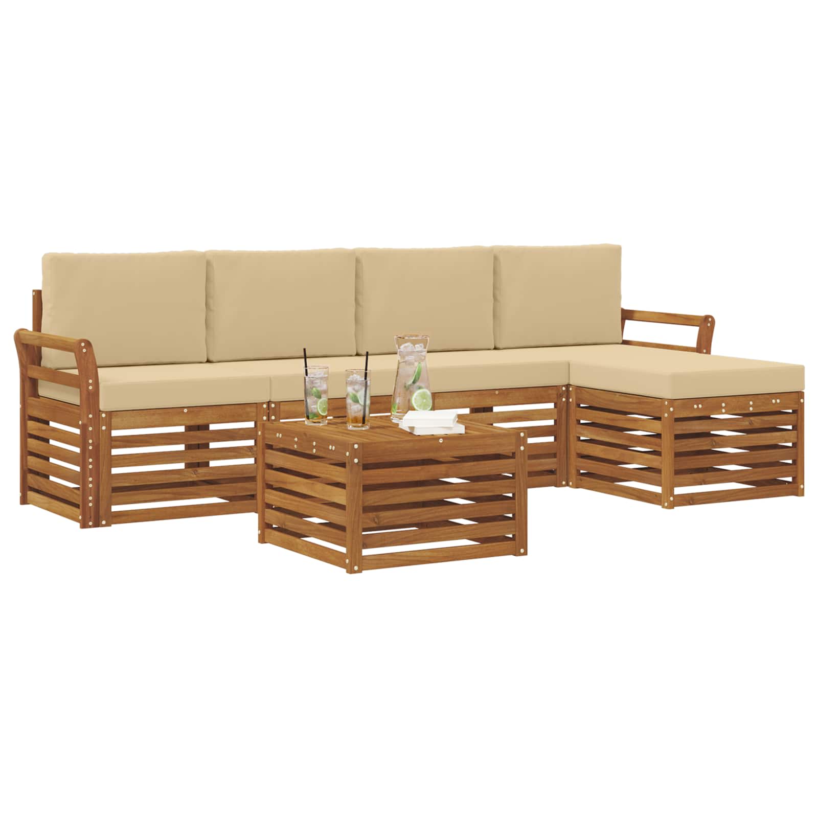 Sedací soupravy 6 pcs Přirozená a Béžová Masivní akátové dřevo