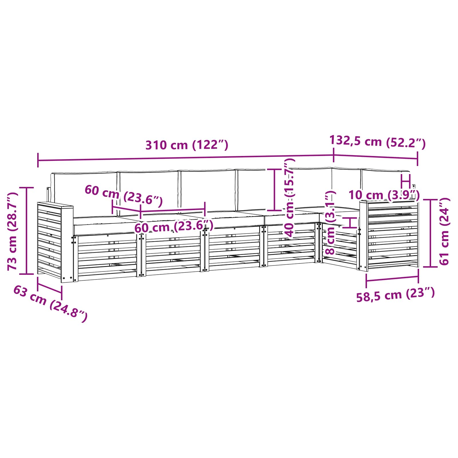 • 5 x Středová pohovka: 63 x 59 x 73 cm (D x Š x V)