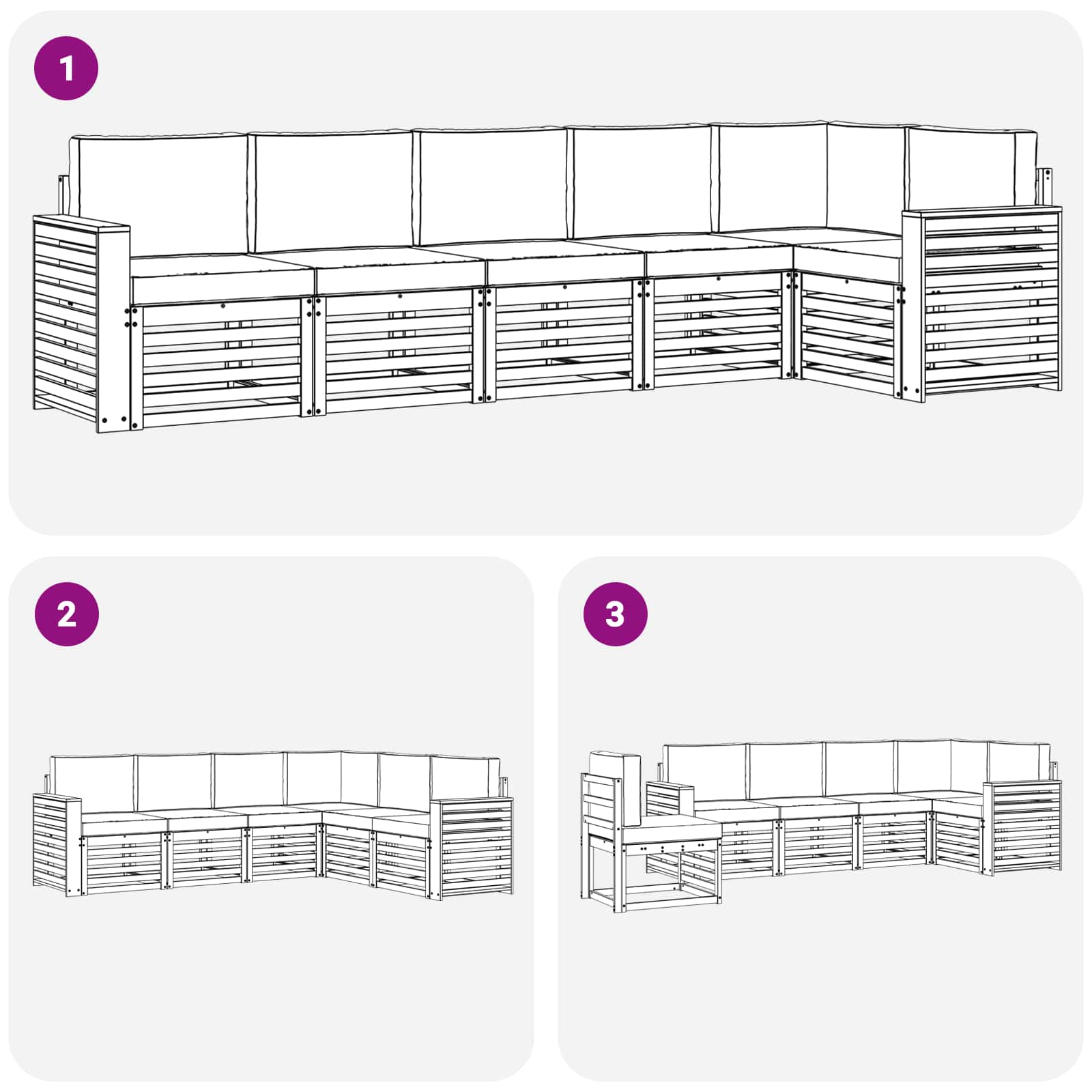 • Pohodlí a variabilita: Modulární design umožňuje flexibilní uspořádání, které se přizpůsobí různým prostorům a potřebám. Perfektní pro relaxaci nebo společenské chvíle, tento set se lehce přizpůsobí jakémukoli venkovnímu prostředí.