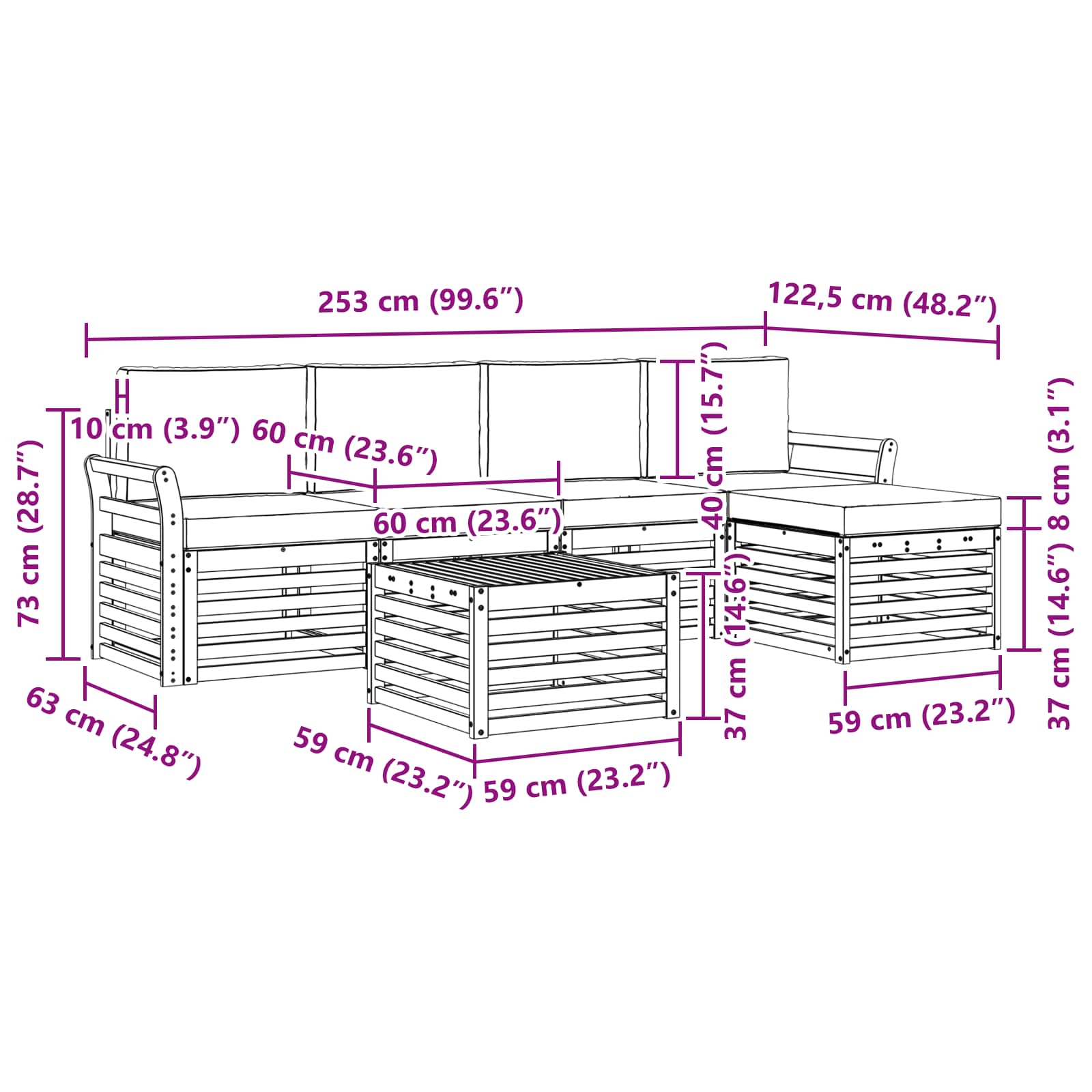 Sedací soupravy 6 pcs Přirozená a Krémová Masivní akátové dřevo