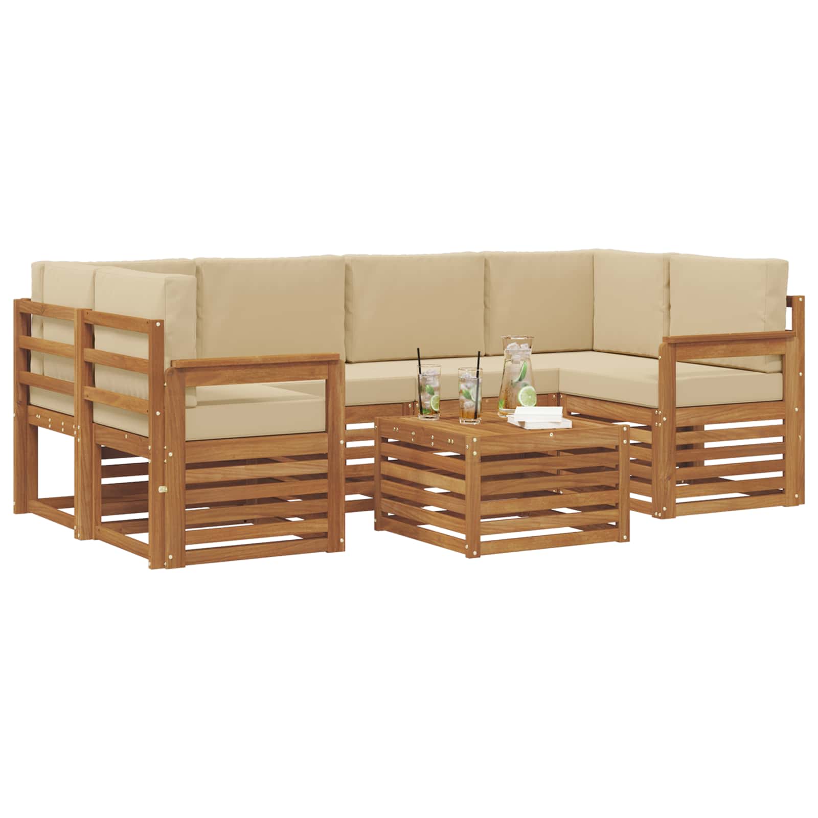Sedací soupravy 7 pcs Přirozená a Béžová Masivní akátové dřevo