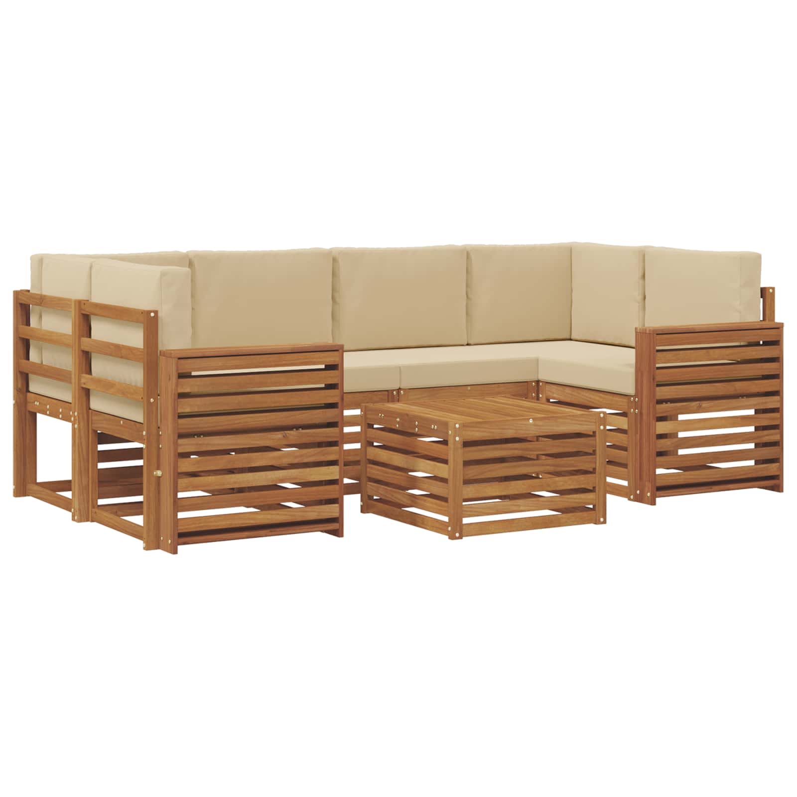 Sedací soupravy 7 pcs Přirozená a Béžová Masivní akátové dřevo