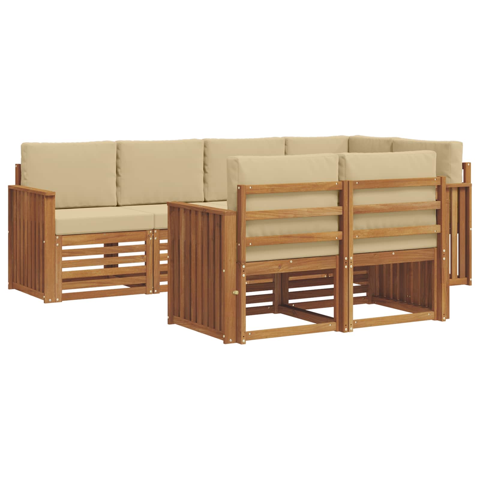 Sedací soupravy 7 pcs Přirozená a Béžová Masivní akátové dřevo