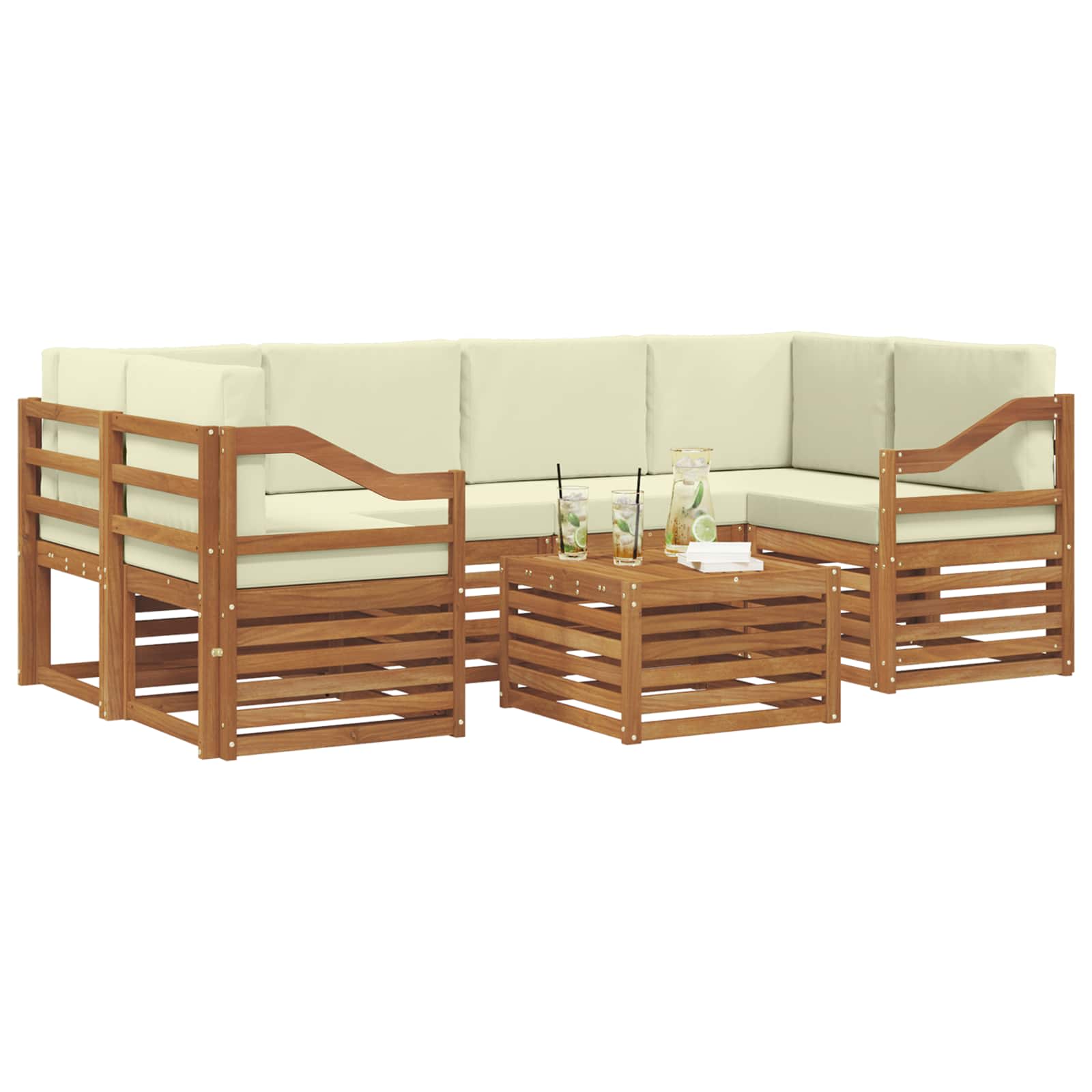 Sedací soupravy 7 pcs Přirozená a Krémová Masivní akátové dřevo