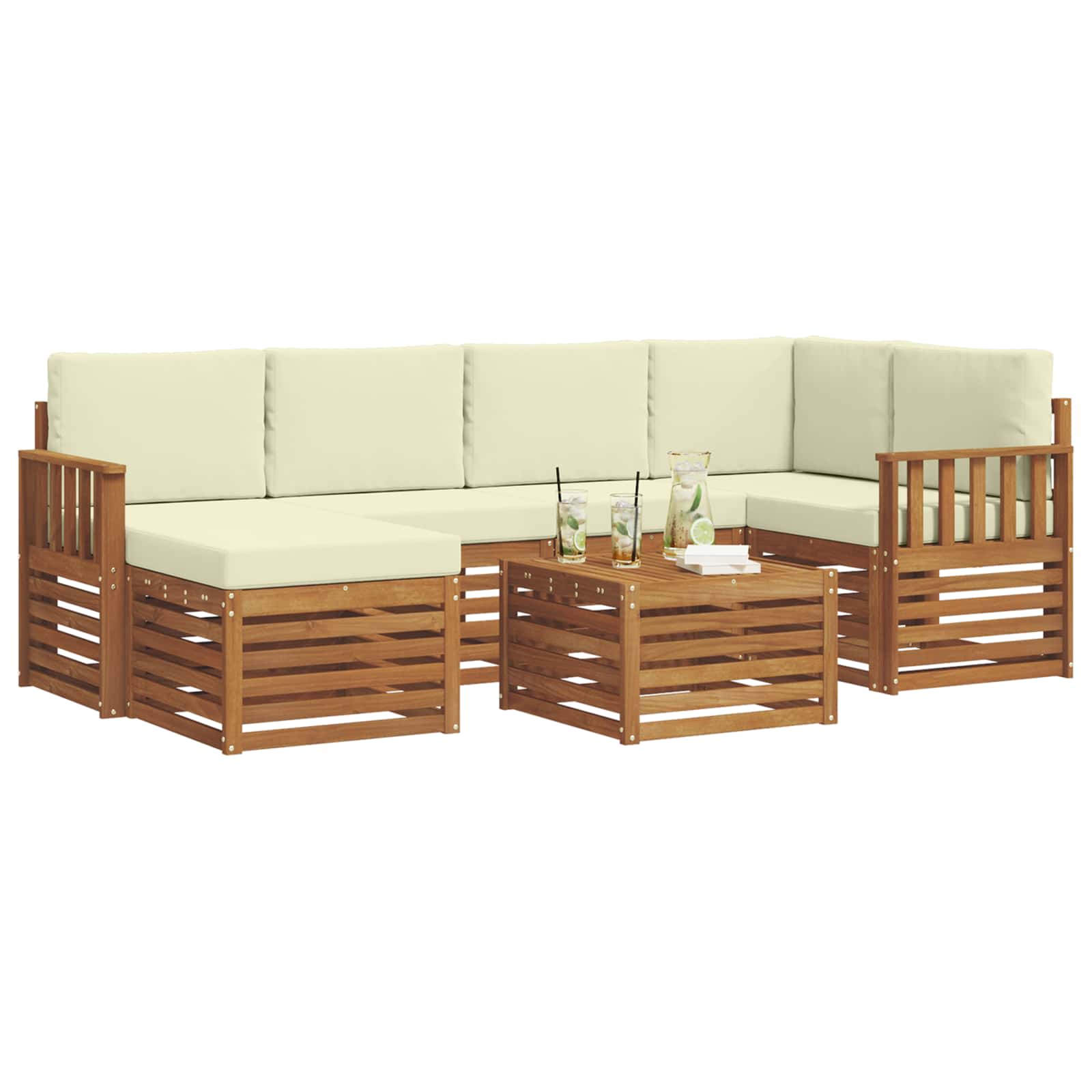 Sedací soupravy 7 pcs Přirozená a Krémová Masivní akátové dřevo